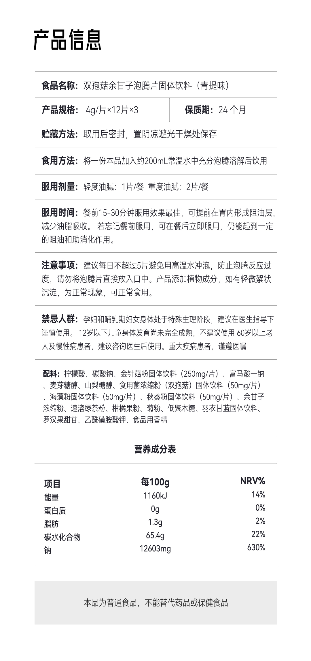 升级版【三效合一 】 双孢菇余甘子泡腾片