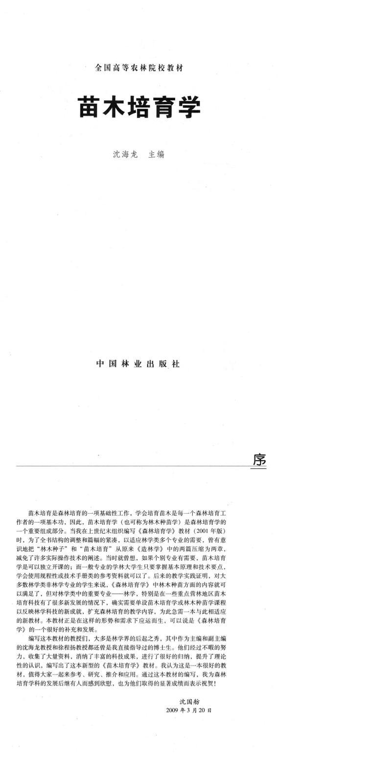 苗木培育学 5571 沈海龙 全国高等农林院校教材 中国林业出版社