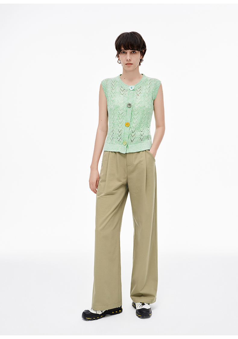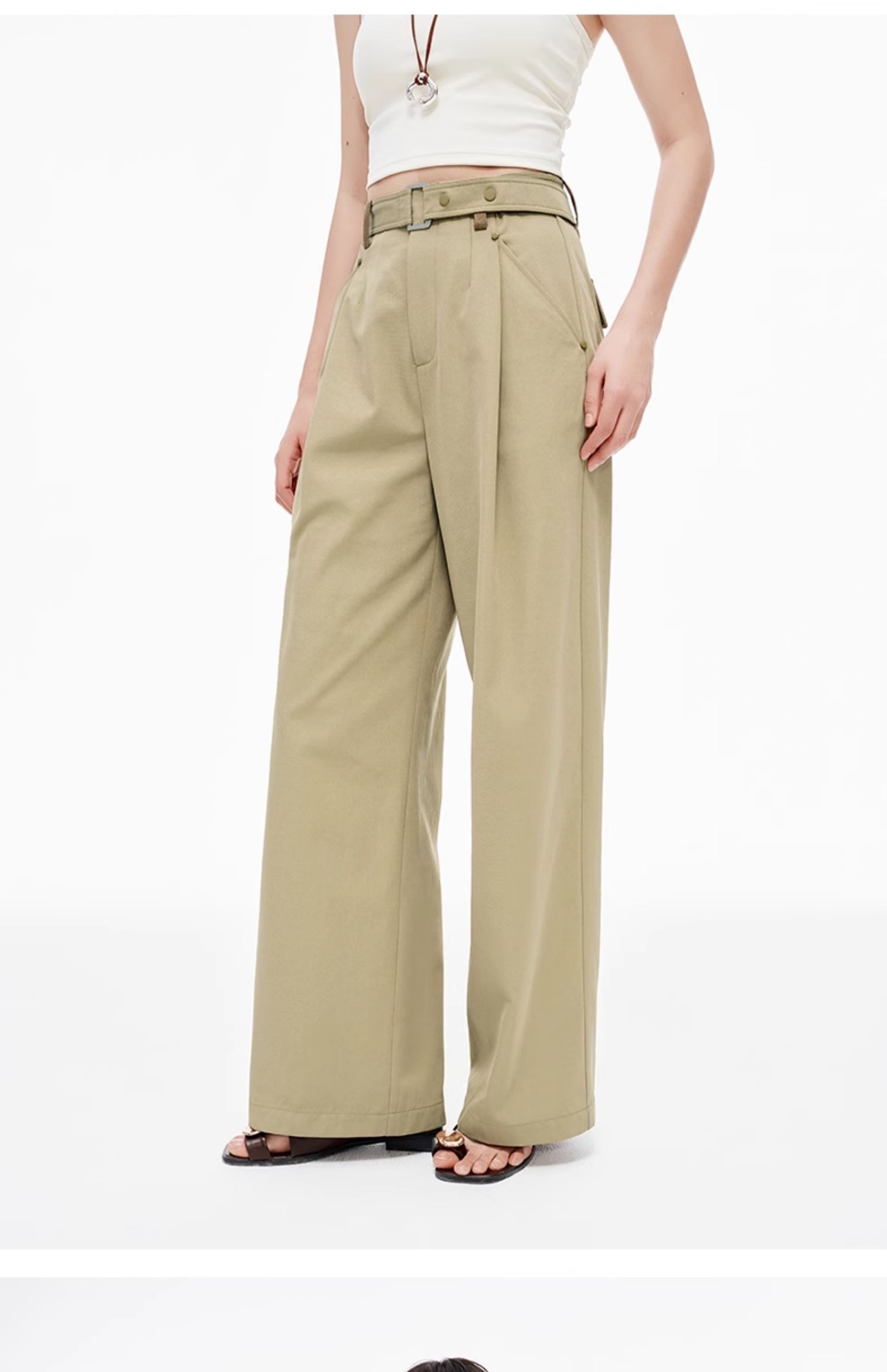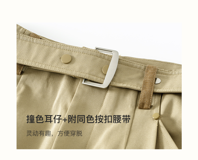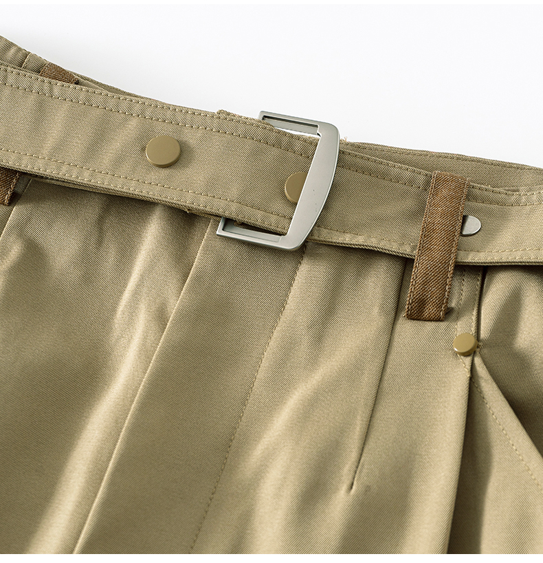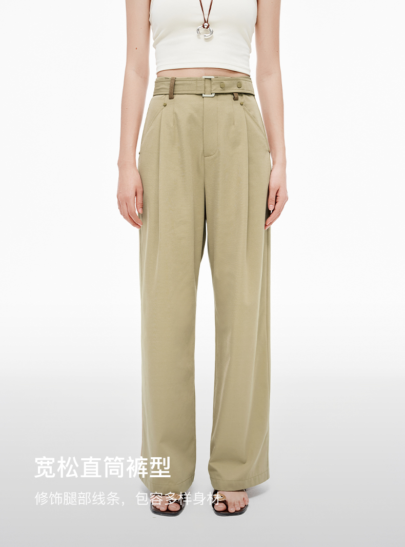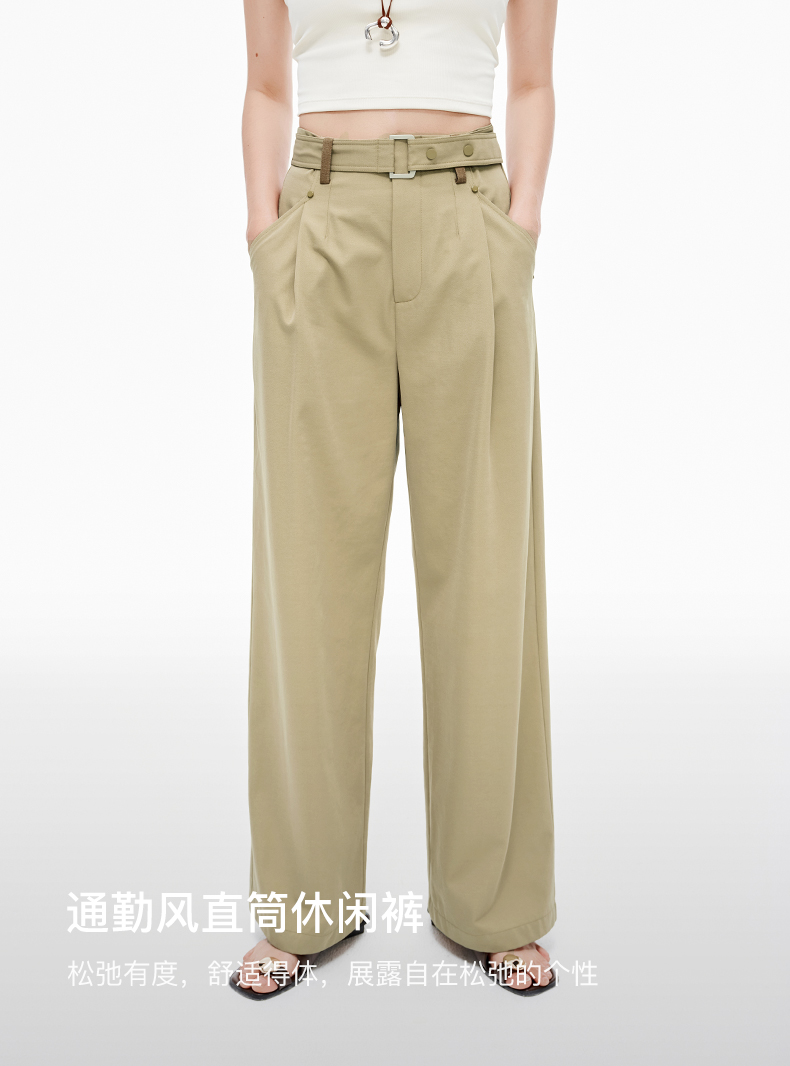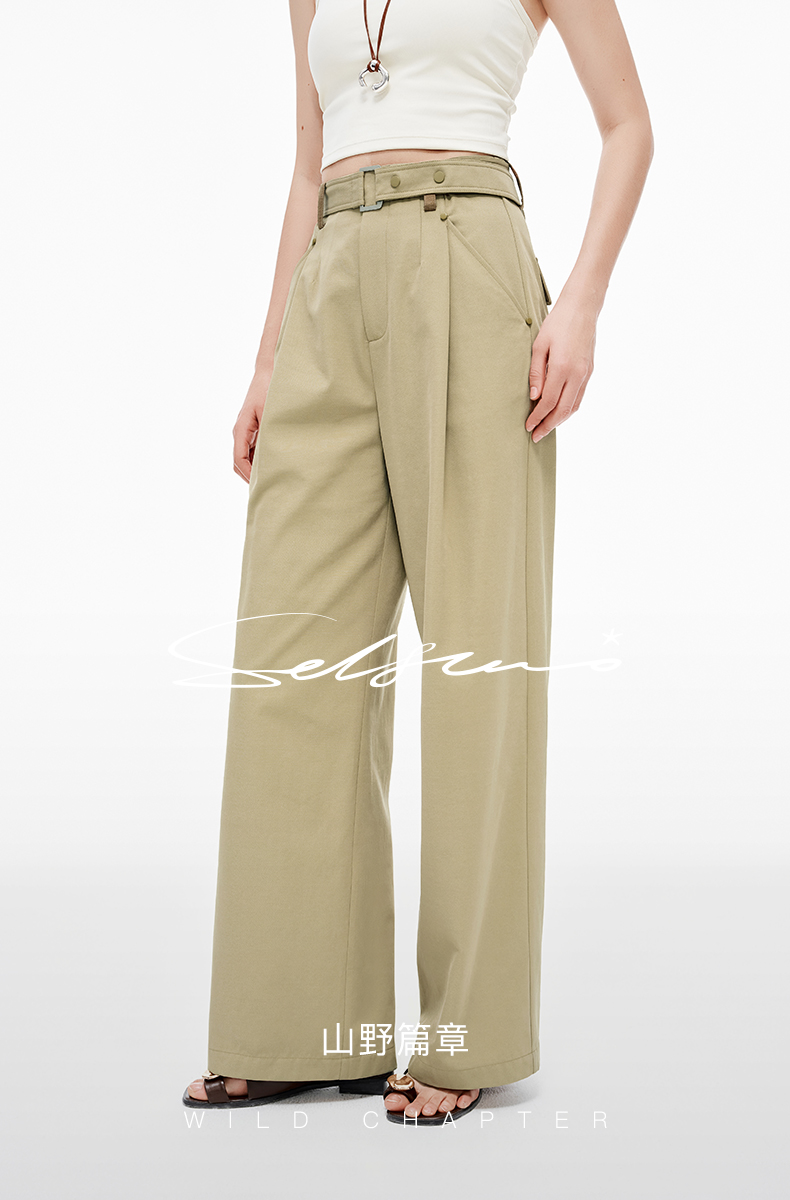 SELFWHO羊毛混纺撞色耳仔轻户外休闲裤女2025夏季新款皮带直筒裤