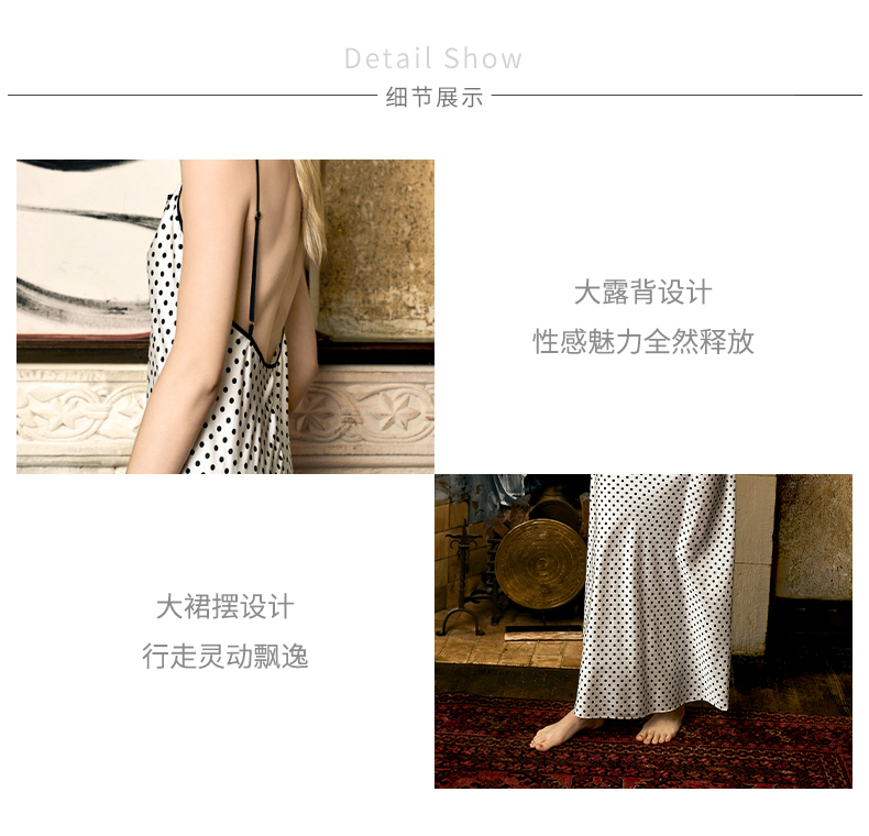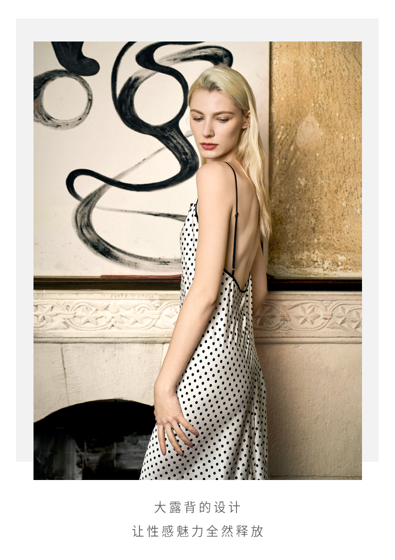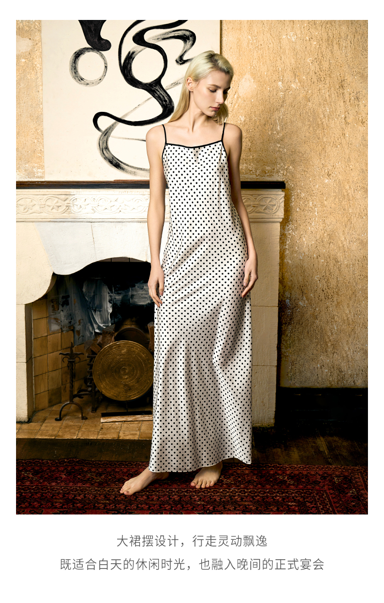 Solo seta22姆米女士真丝波点连衣睡裙桑蚕丝时尚显瘦长裙秋冬