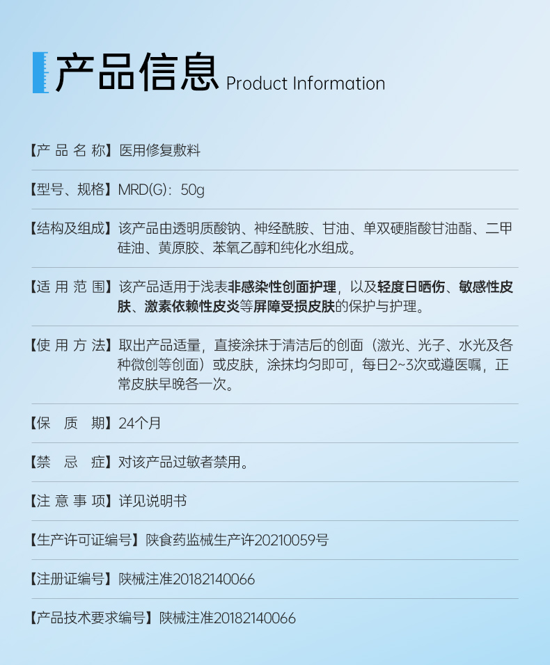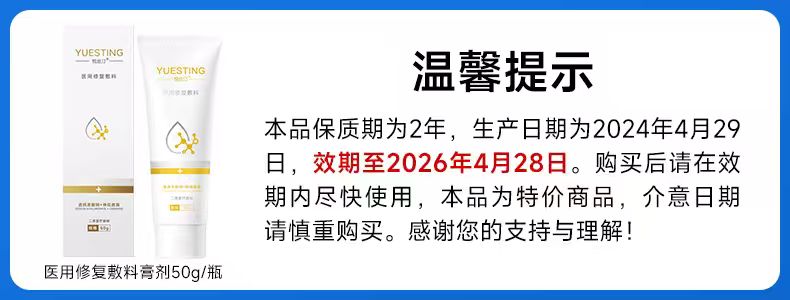 悦丝汀医用修复敷料乳膏敏感肌术后皮炎屏障修护日晒创面护理50g