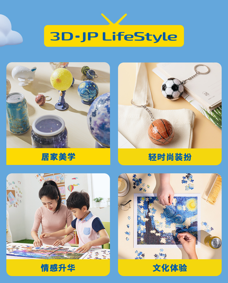 3寸61片灯光球拼图 J1131 棉花狮-开运奶牛猫