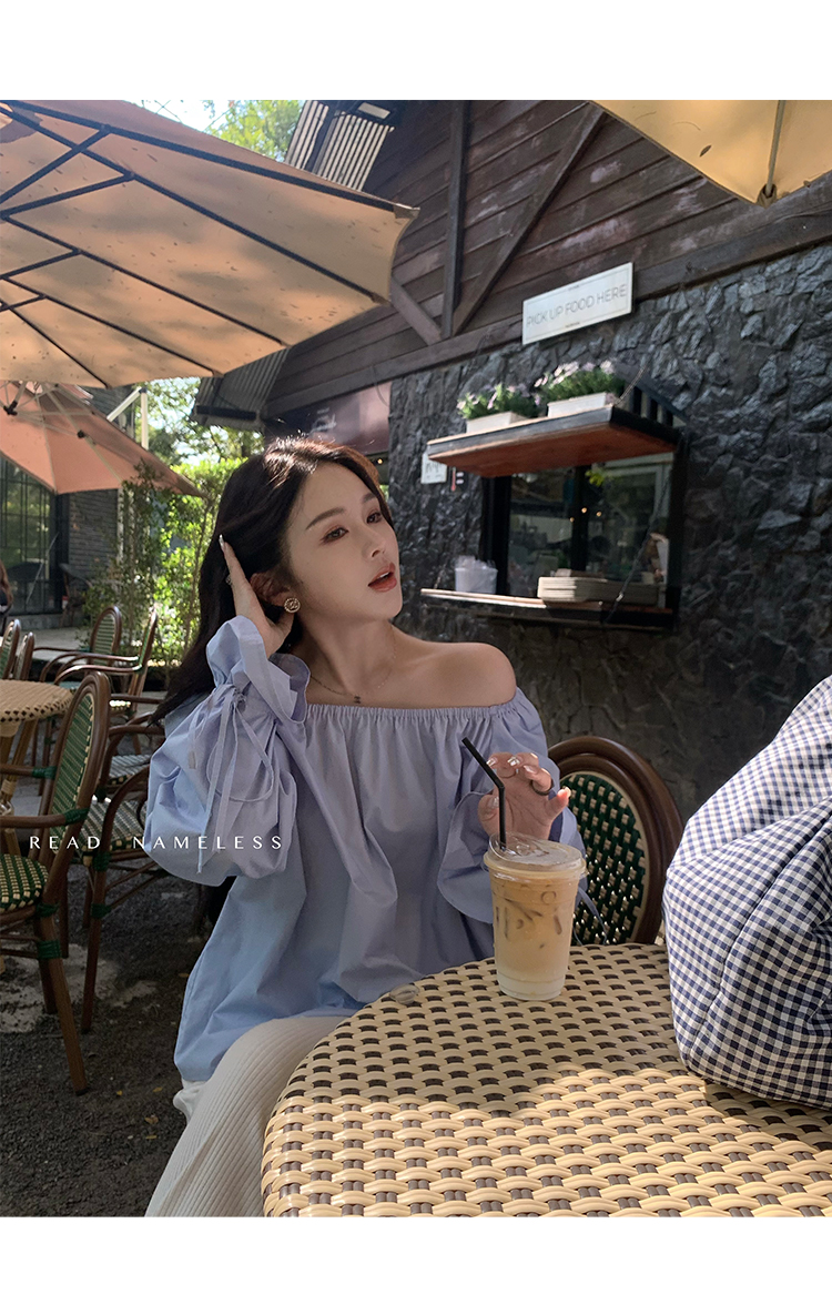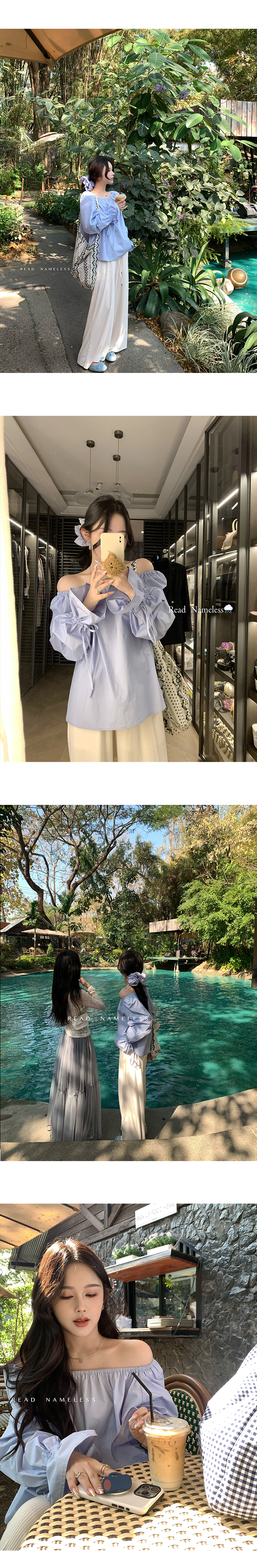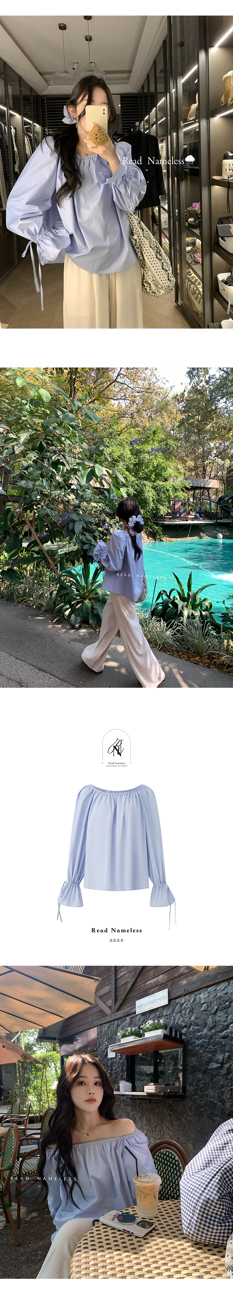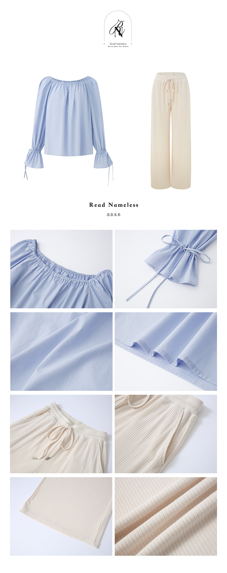 Read Nameless /蓝色系带衬衫可露肩+氧气裤奶白色 2025/3/17