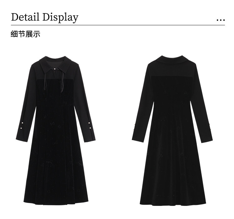 鹿向南「云锦春华」新中式气质丝绒款国潮女秋冬显瘦黑色连衣裙