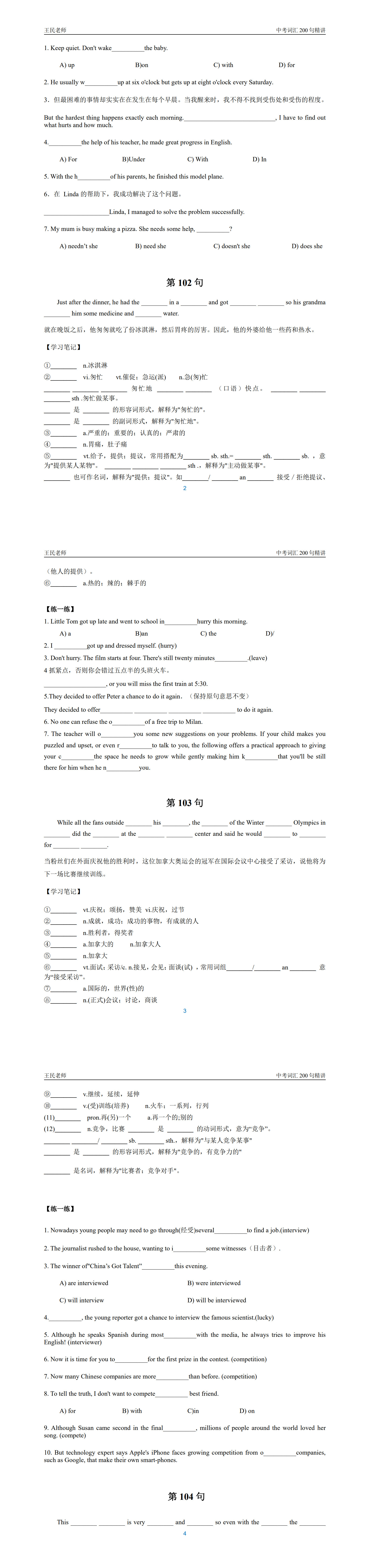 200句搞定中考词汇