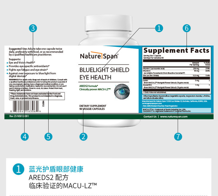 眼睛视力营养配方电子屏幕蓝光盾 软胶囊90粒 NATURESPAN倍能适