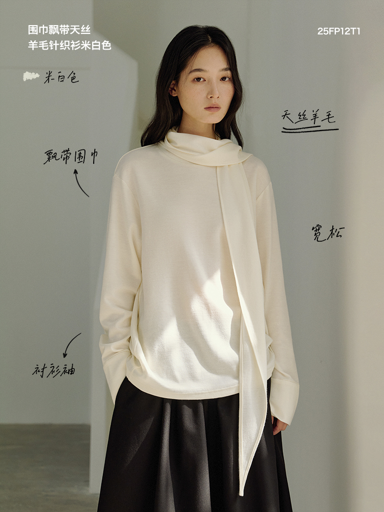 ForPoem 25/FW 原创设计围巾飘带天丝羊毛针织衫