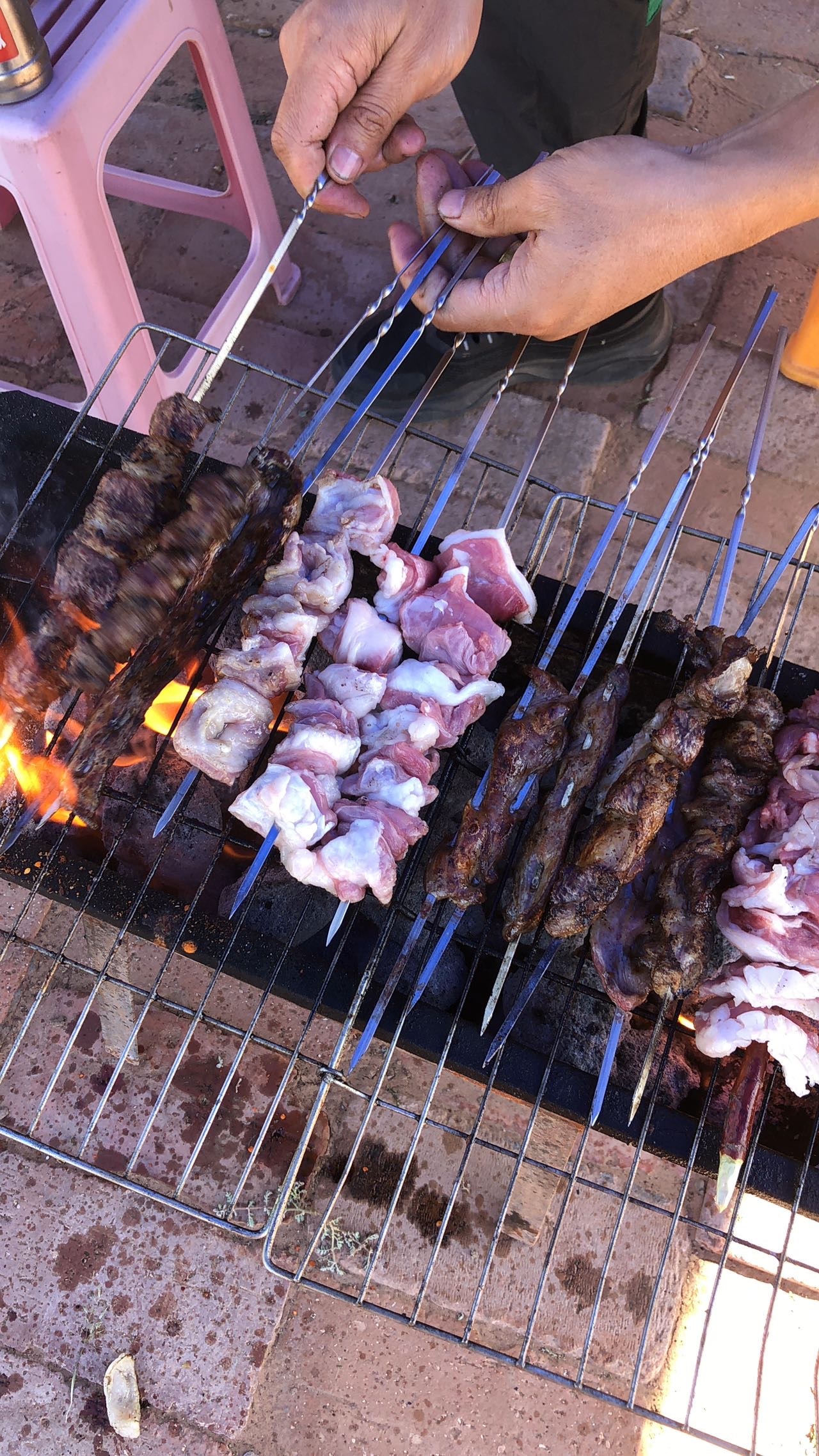 架起了烤炉🔥肥瘦相间的羊肉串起来