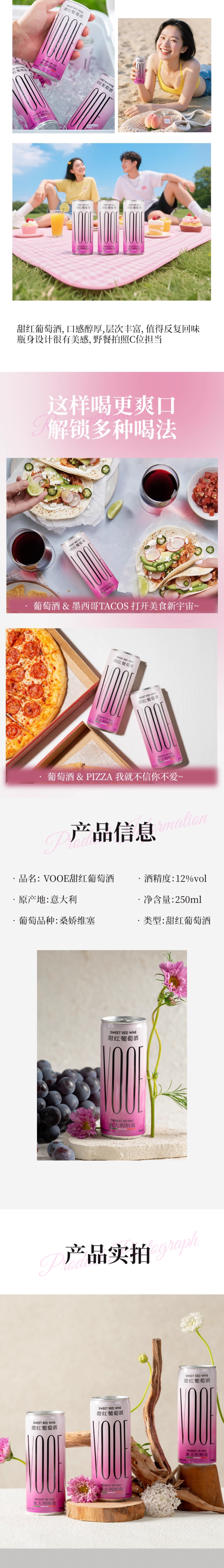 【VOOE】意大利进口葡萄酒250ml 节日送礼婚宴聚会酒 女士微醺晚安酒