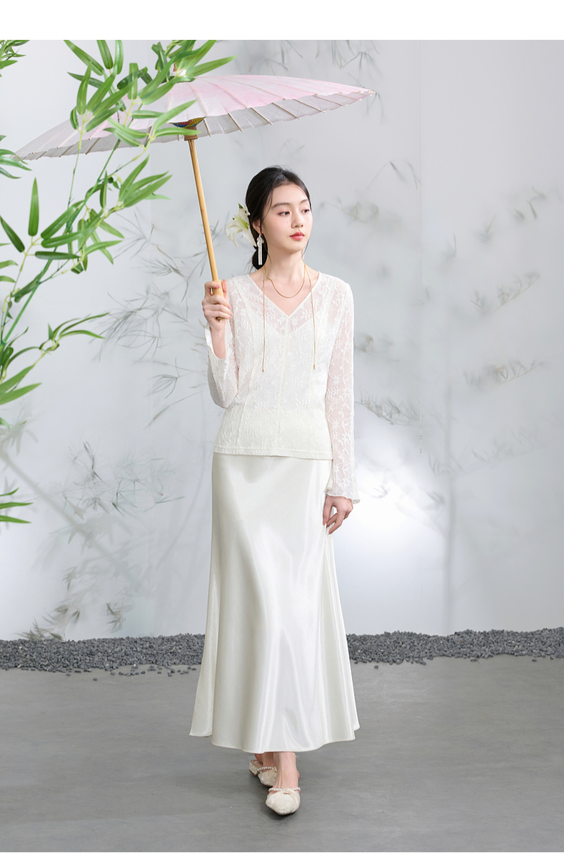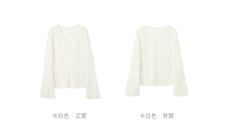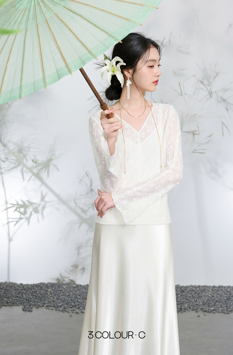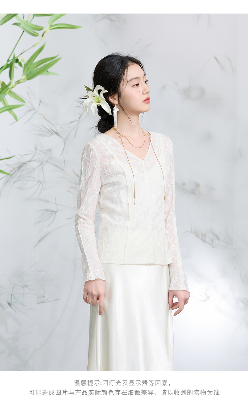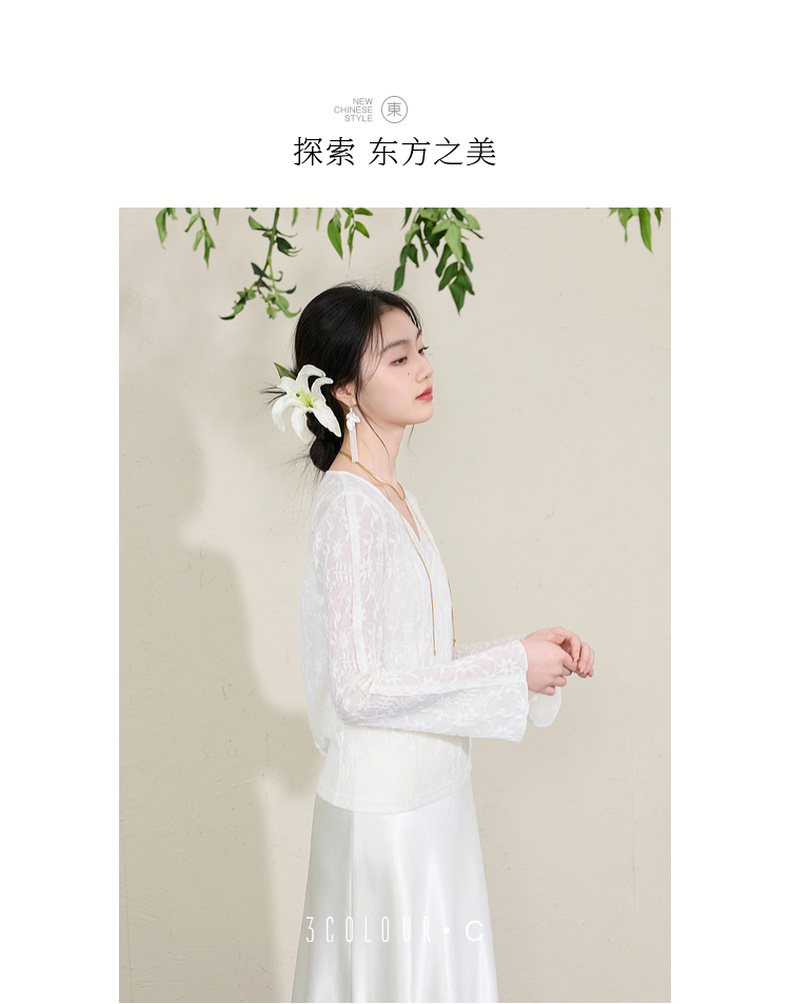 三彩【烟雨初霁】2026春季新款新中式小衫V领不规则长袖上衣C