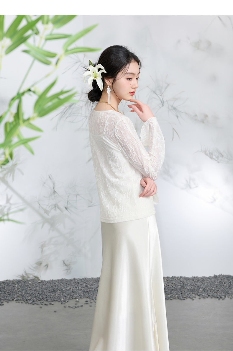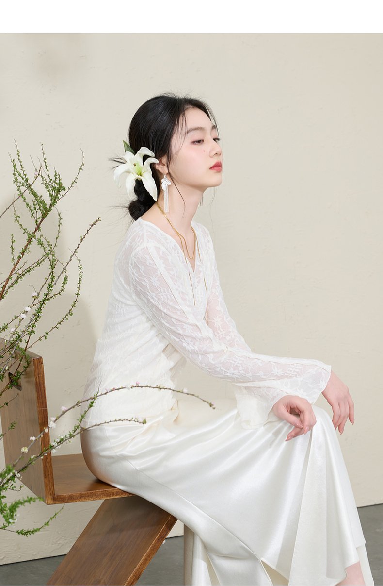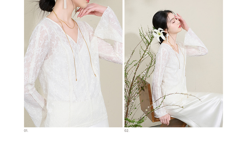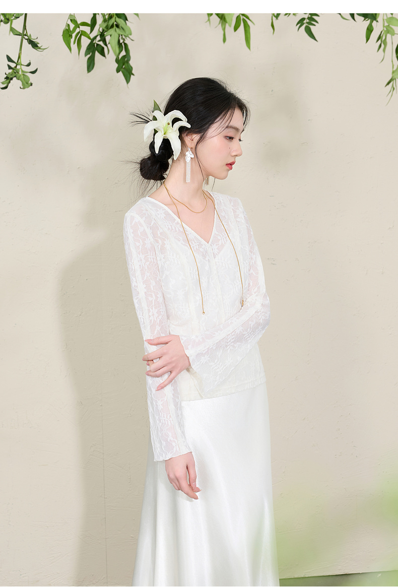 三彩【烟雨初霁】2026春季新款新中式小衫V领不规则长袖上衣C
