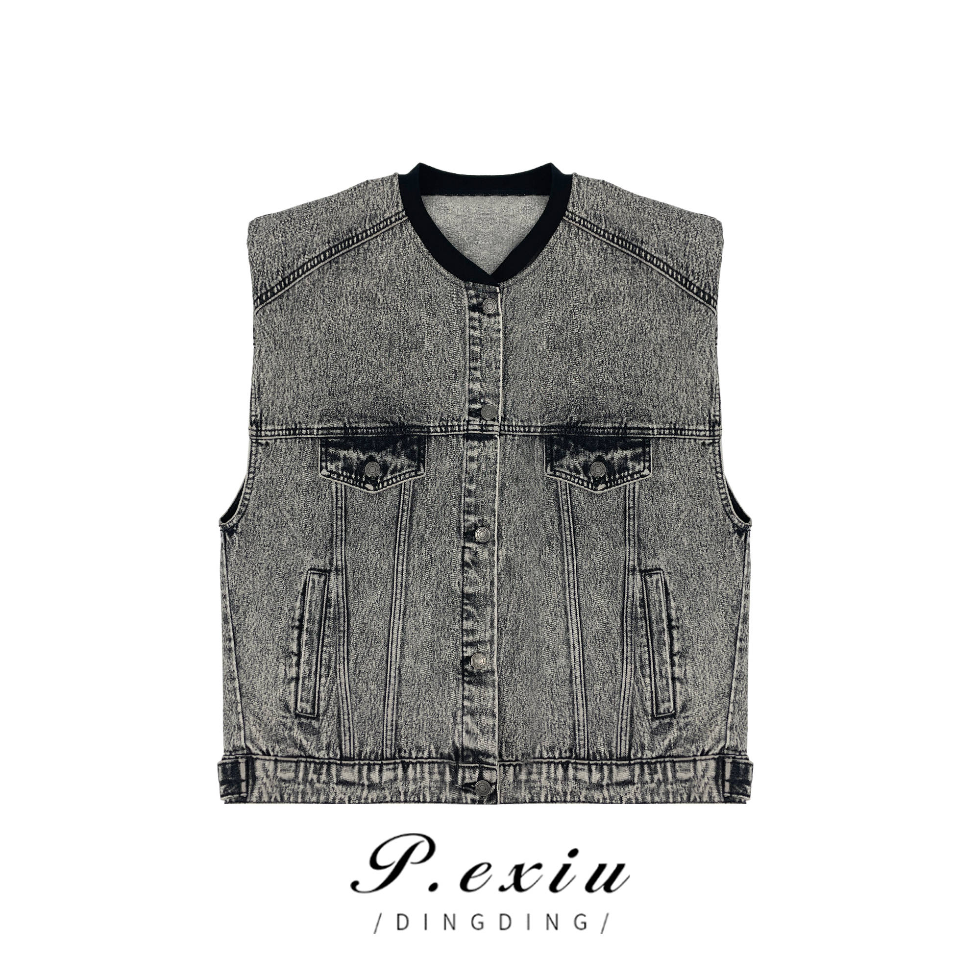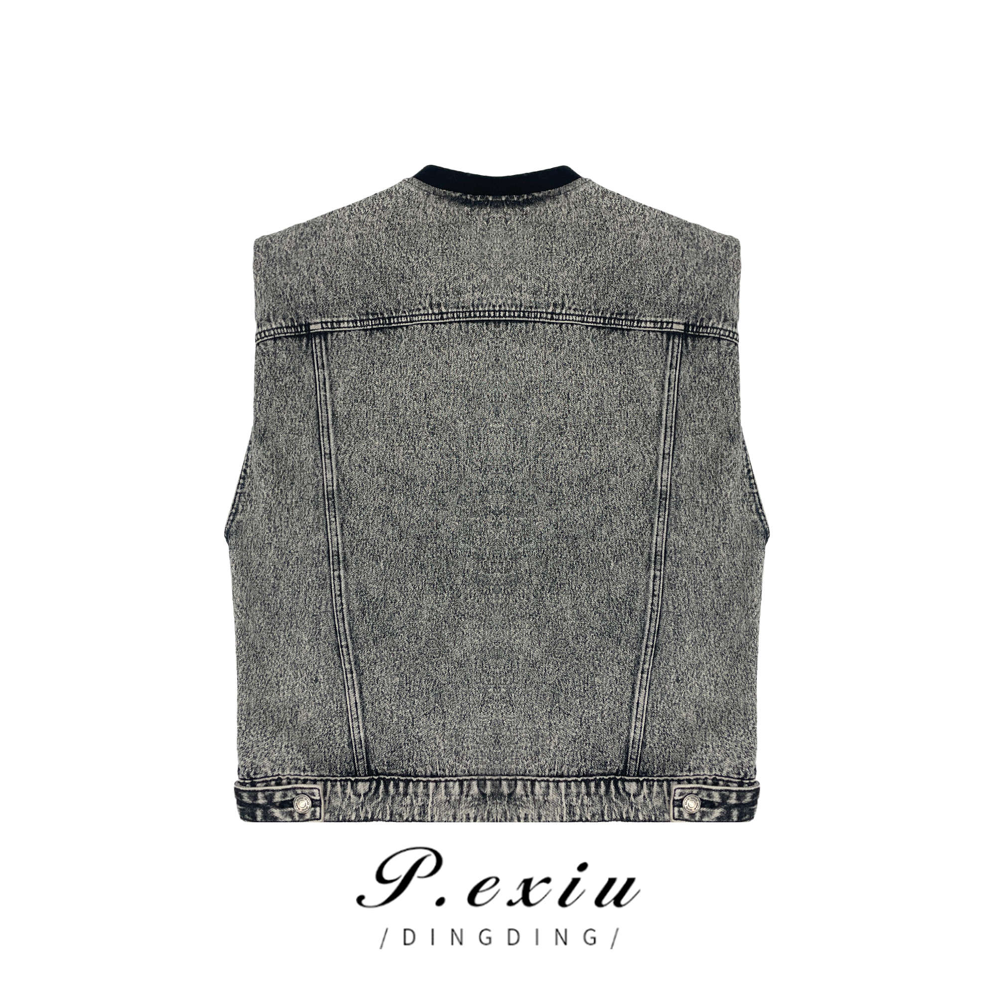 01-1 潘依绣丁丁宠粉【复古牛仔】美式复古宽松百搭水洗牛仔马甲 D5762