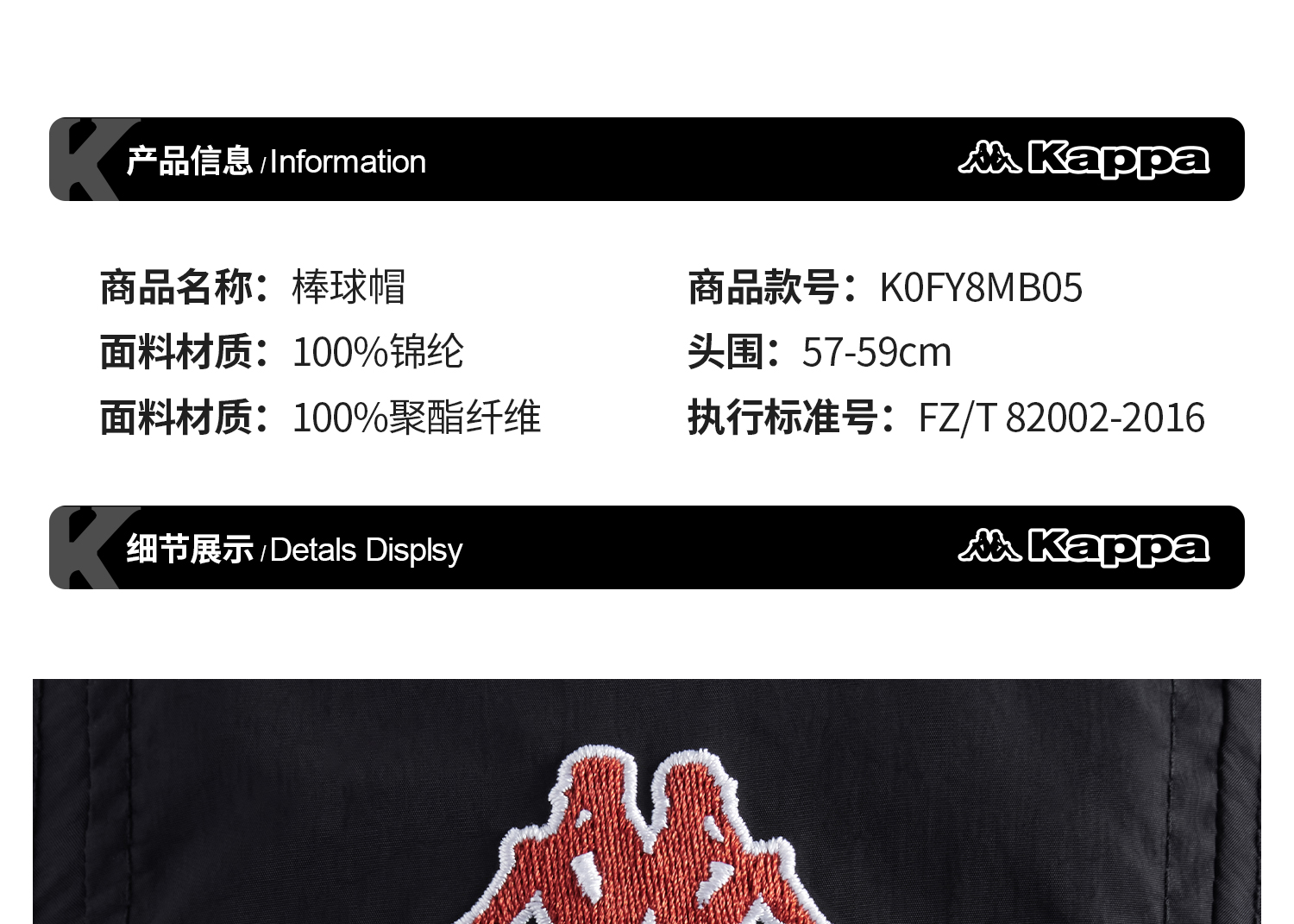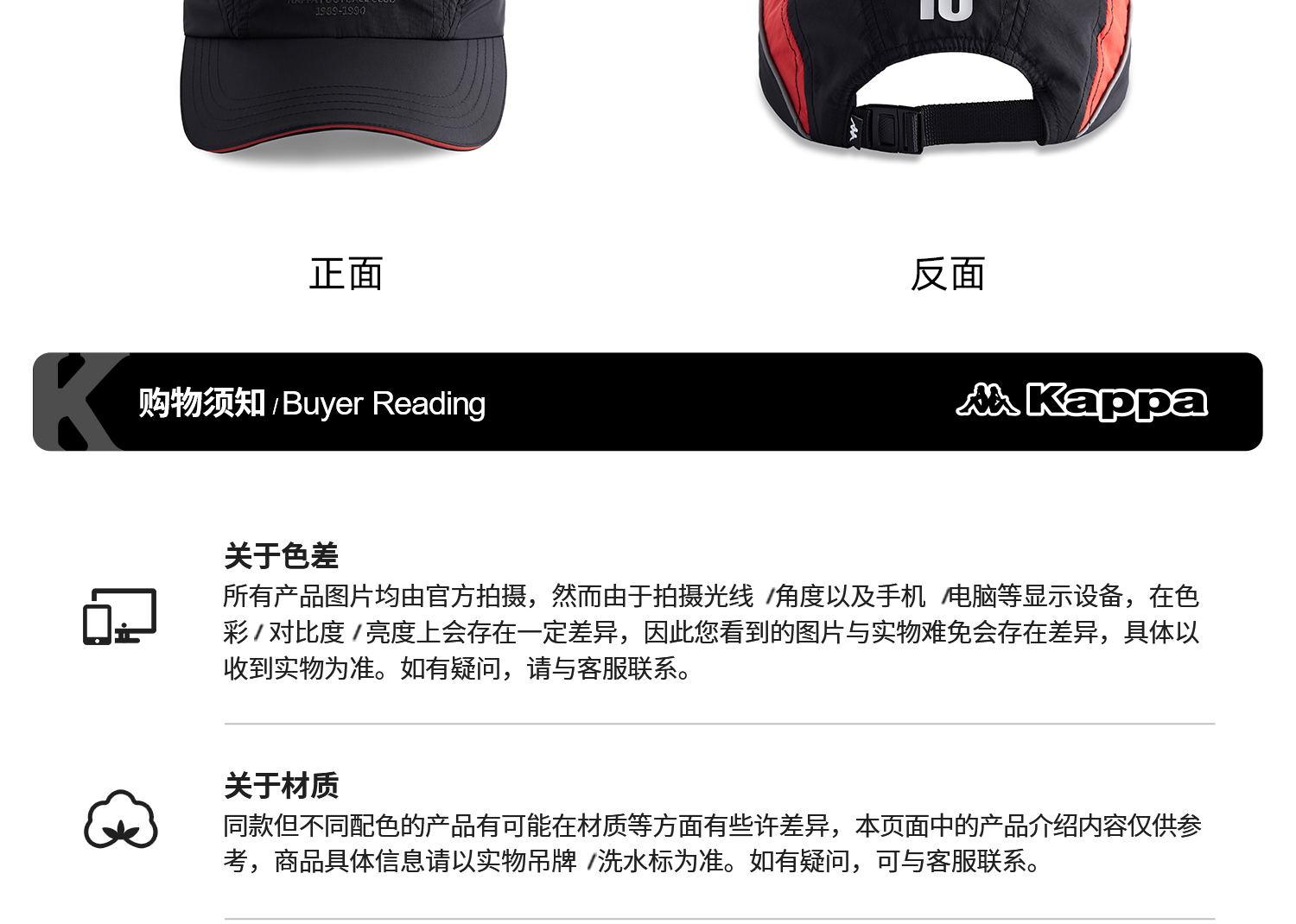 Kappa卡帕背靠背运动帽男2025新款夏季户外遮阳帽鸭舌棒球帽子女K0FY8MB05
