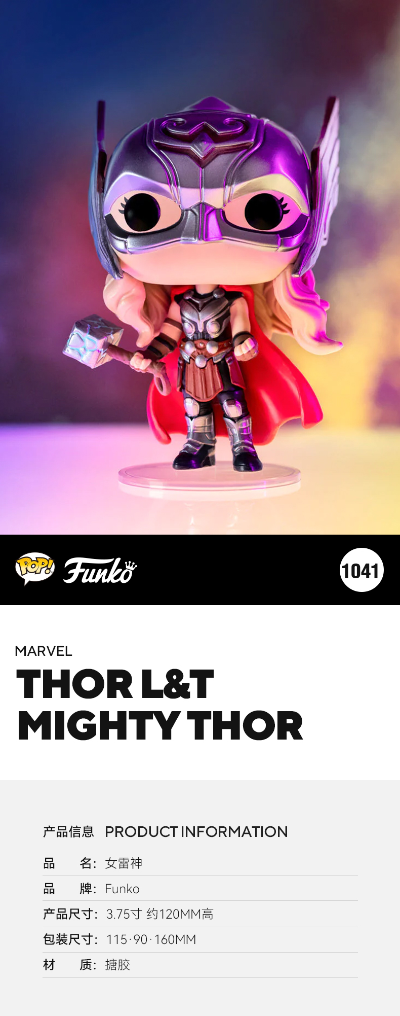Funko POP! Marvel Mighty Thor 美漫漫威英雄《雷神4:爱与雷霆》威猛雷神公仔手办摆件 62422