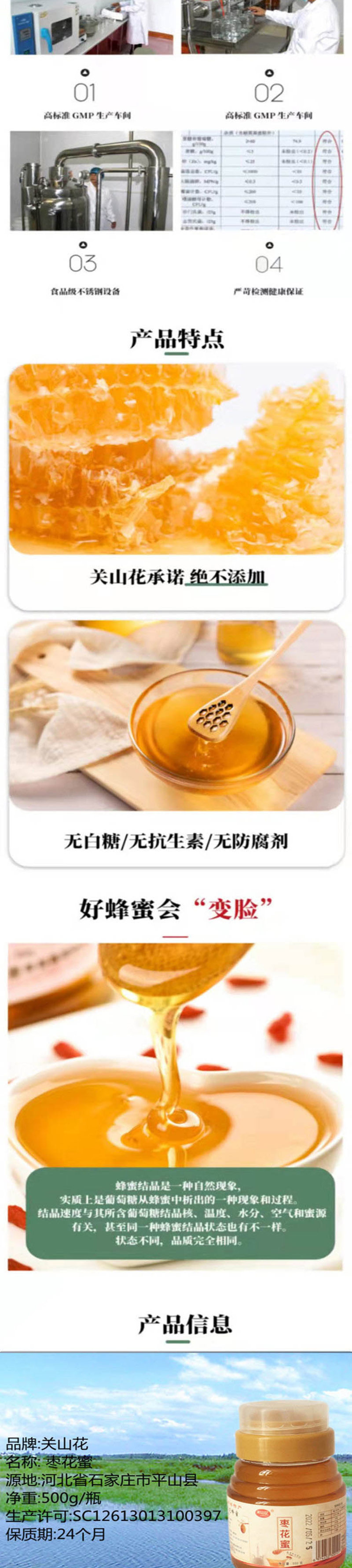 关山花 西柏坡特产枣花蜂蜜 500克/瓶 休闲零食