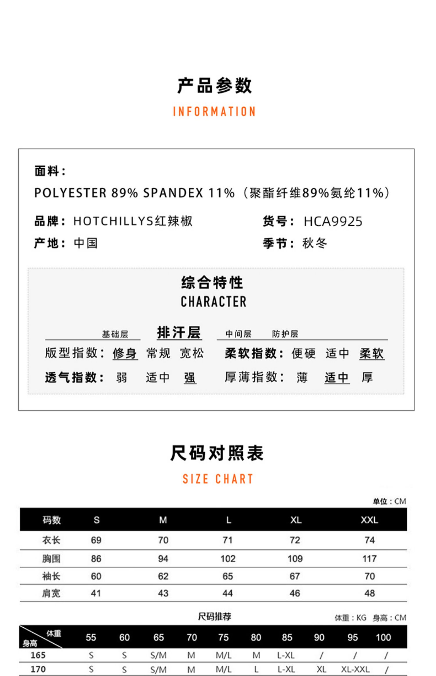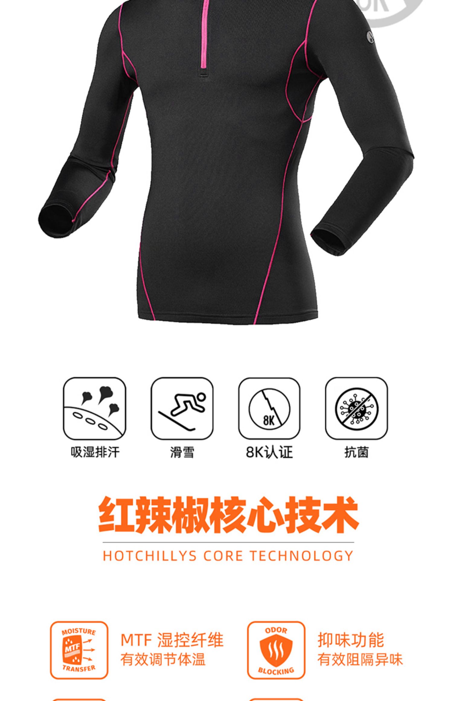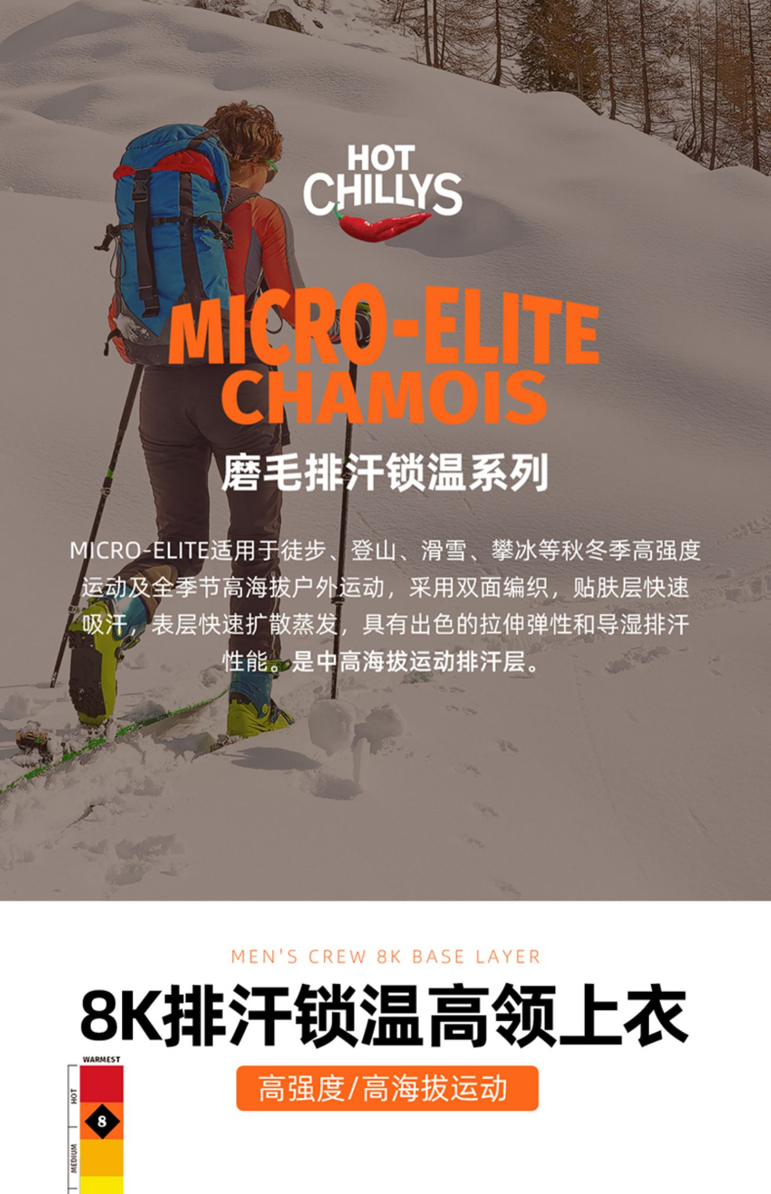 HOTCHILLYS热椒8K磨毛高领运动内衣男登山速干排汗上衣HA9925
