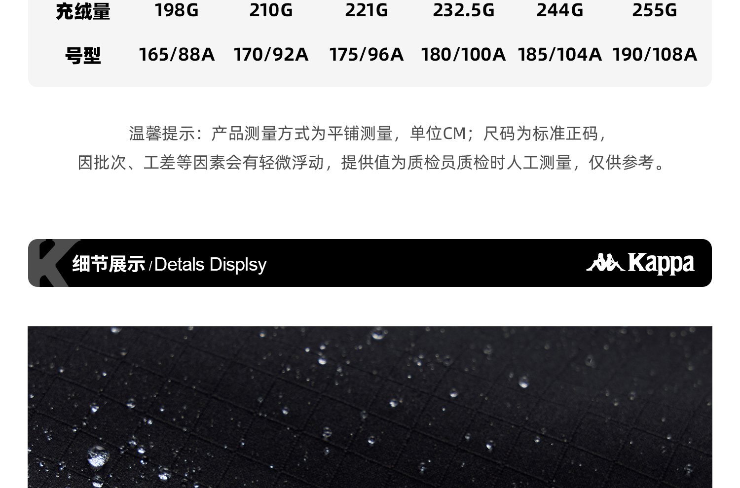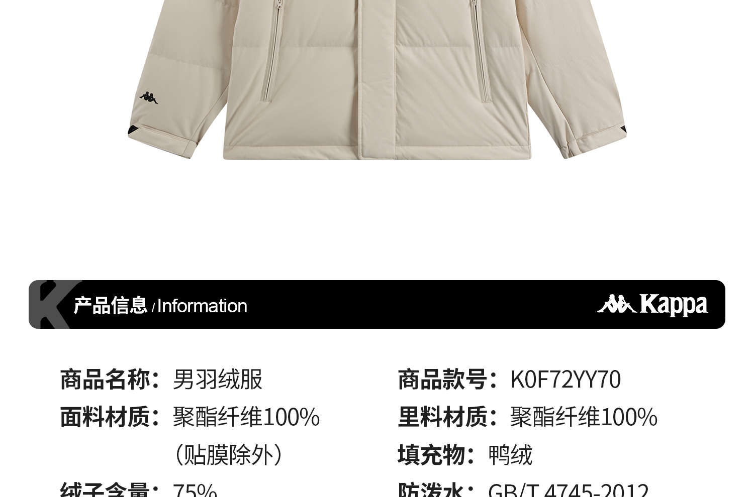 Kappa 羽绒服男2025新款冬季防风防泼水外套运动上衣女K0F72YY70