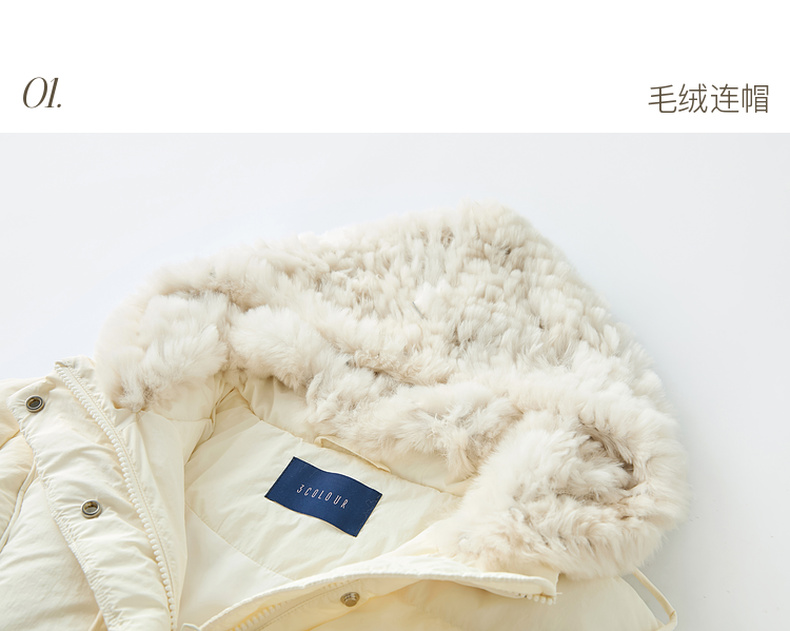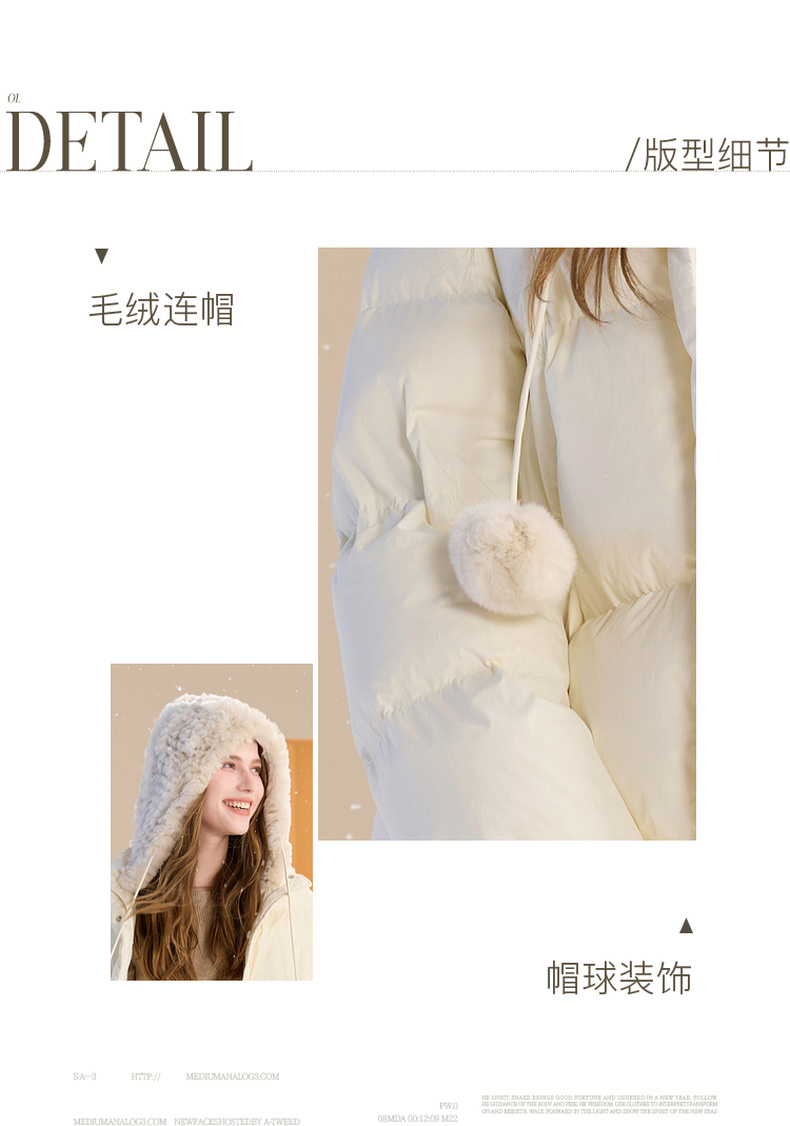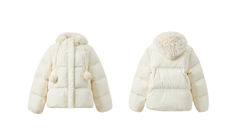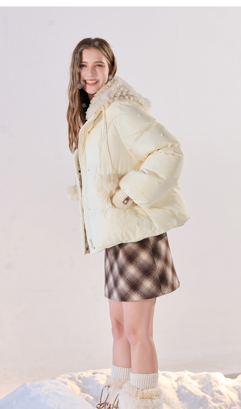 【易打理+防水】三彩2025冬季新款连帽羽绒服90白鸭绒外套面包服M