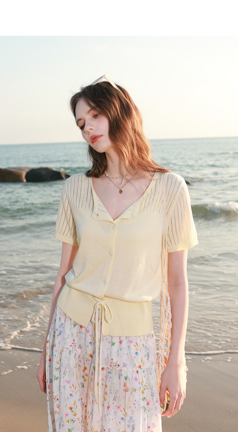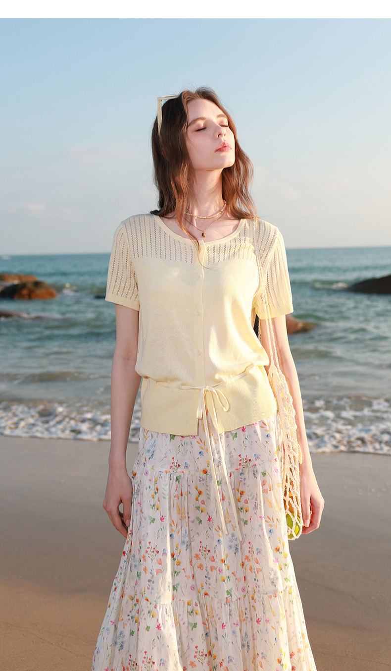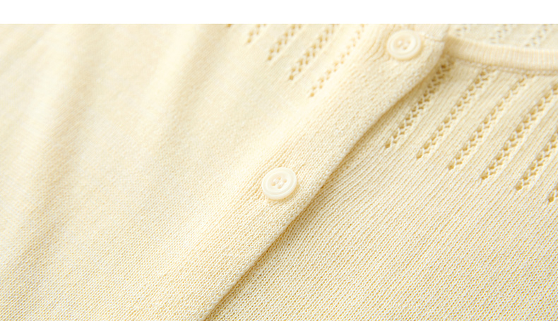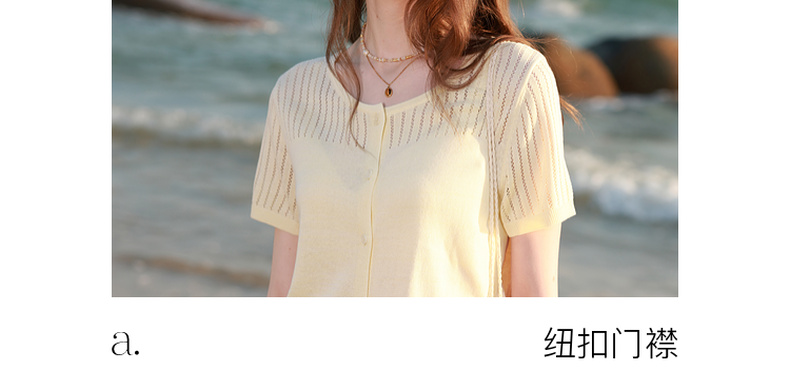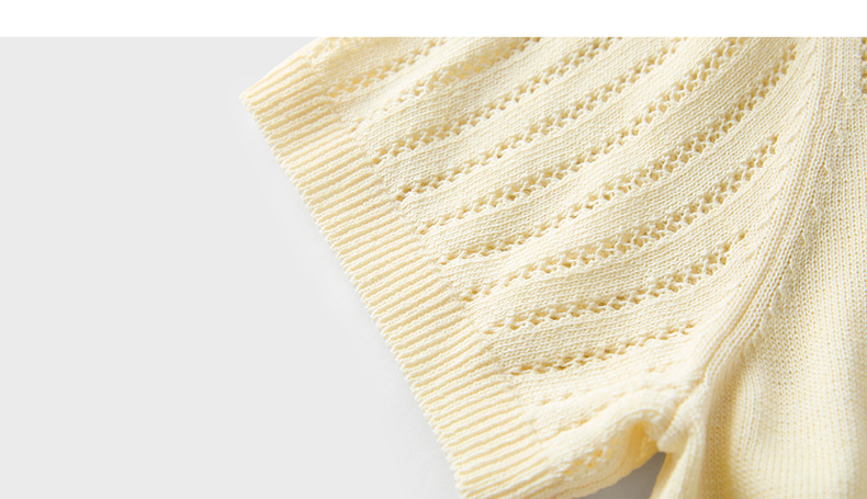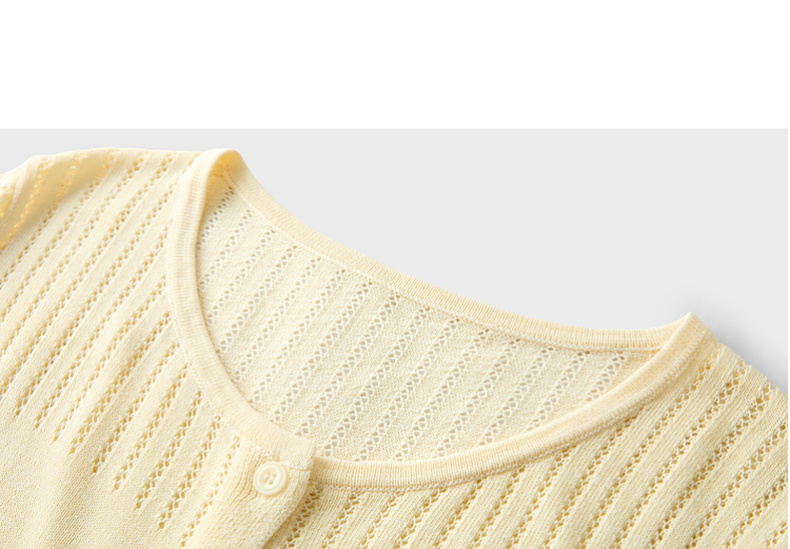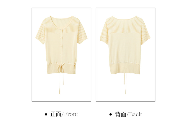 三彩2026春季新款镂空圆领开衫短袖针织衫收腰上衣小外套M