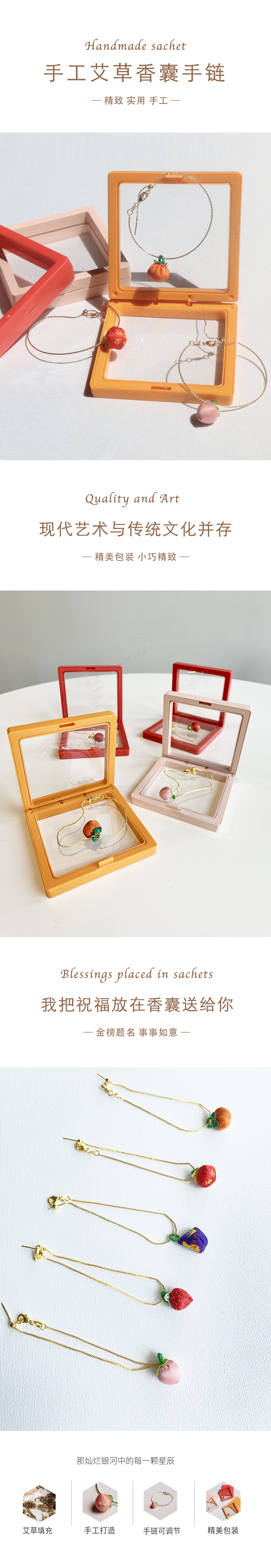 【捡漏39.9元/2件 艾草香囊手链】手工香囊首饰 可调节饰品 手工制作 佩戴香囊手链 端午柿柿如意香包手链