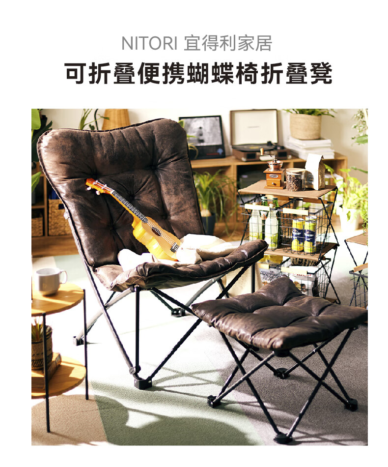NITORI宜得利家居 户外露营可折叠椅便携式复古高背蝴蝶椅折叠凳慵懒风