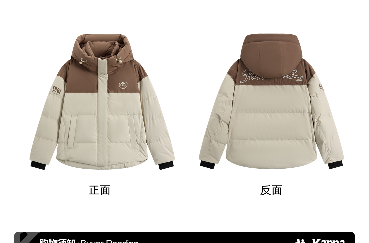 Kappa 运动羽绒服女2025新款冬季连帽面包服保暖外套K0F82YY10