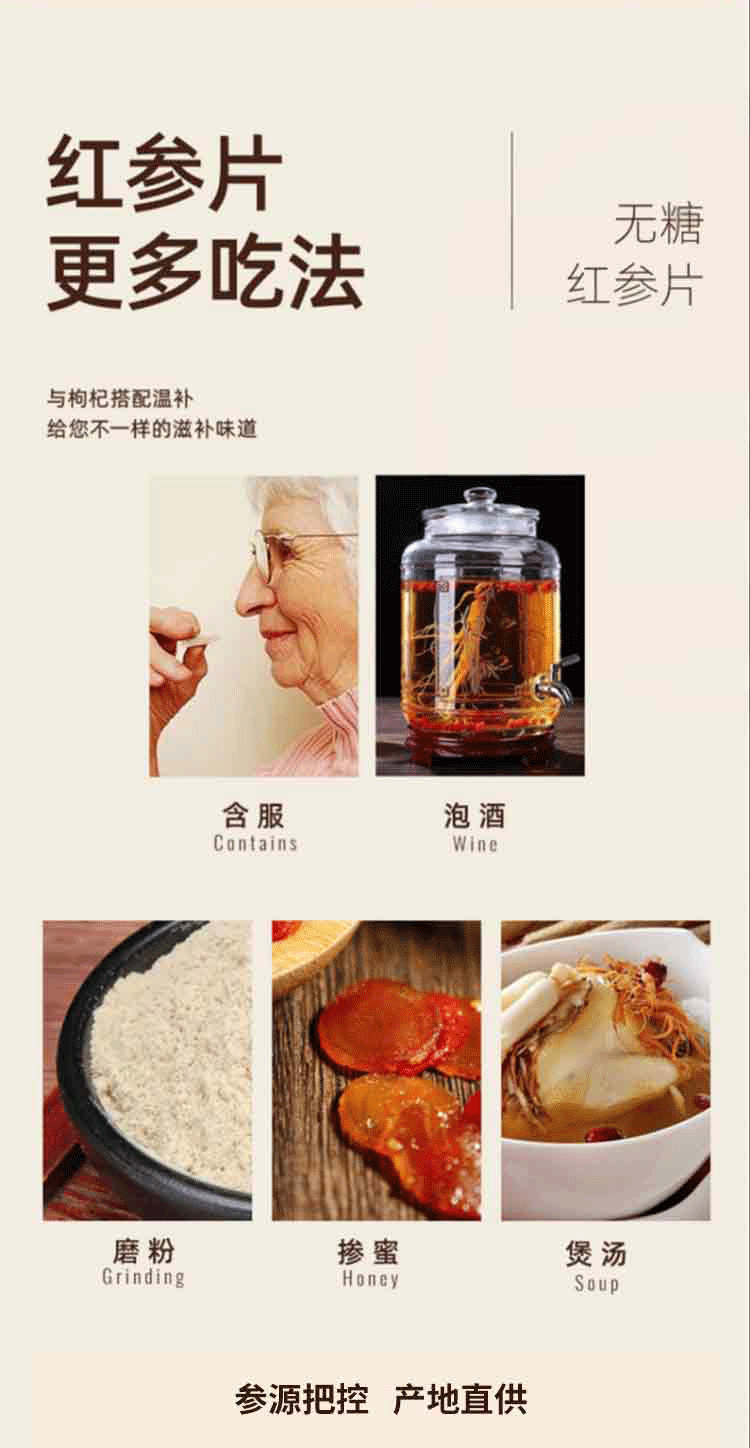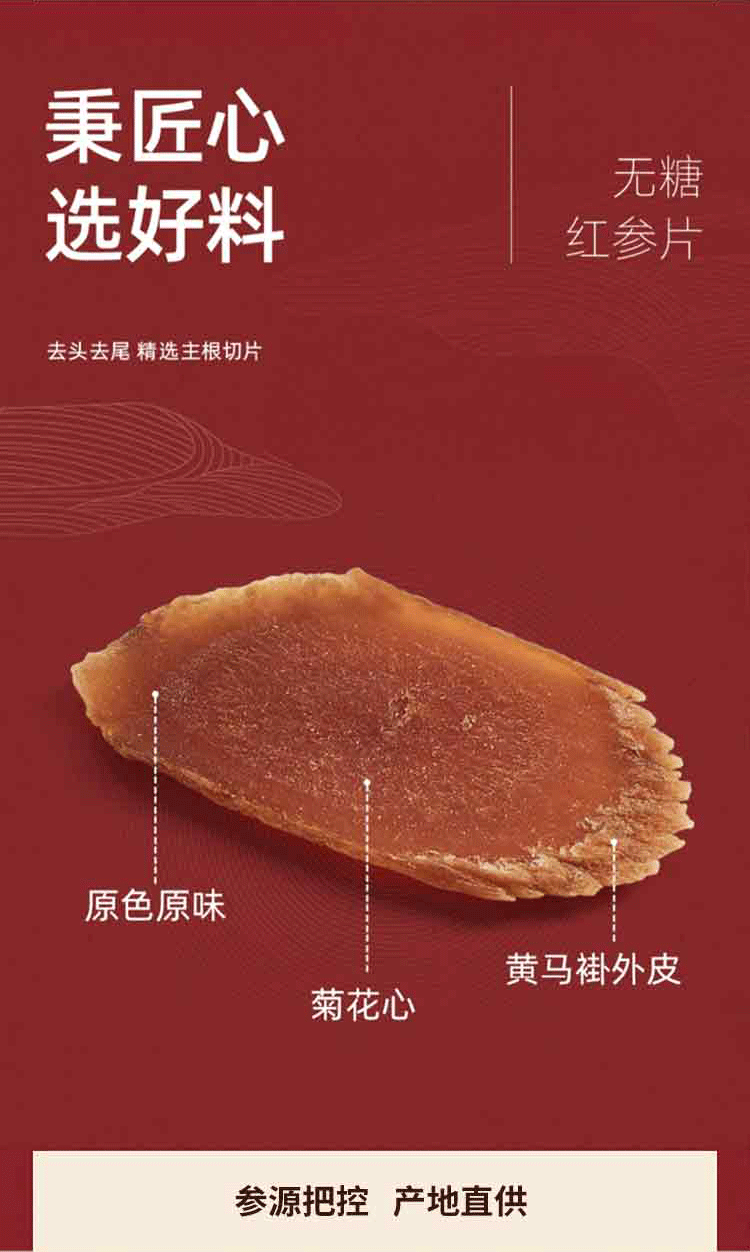 50g/盒 人参蜜片(S级)泡水即食鲜参人参切片泡茶煲汤参片
