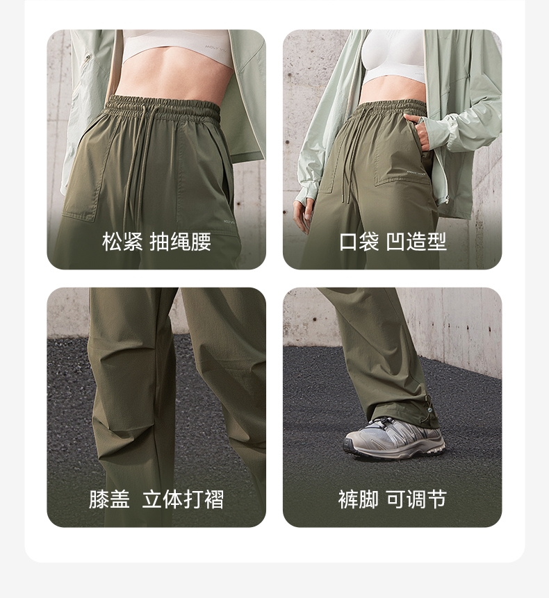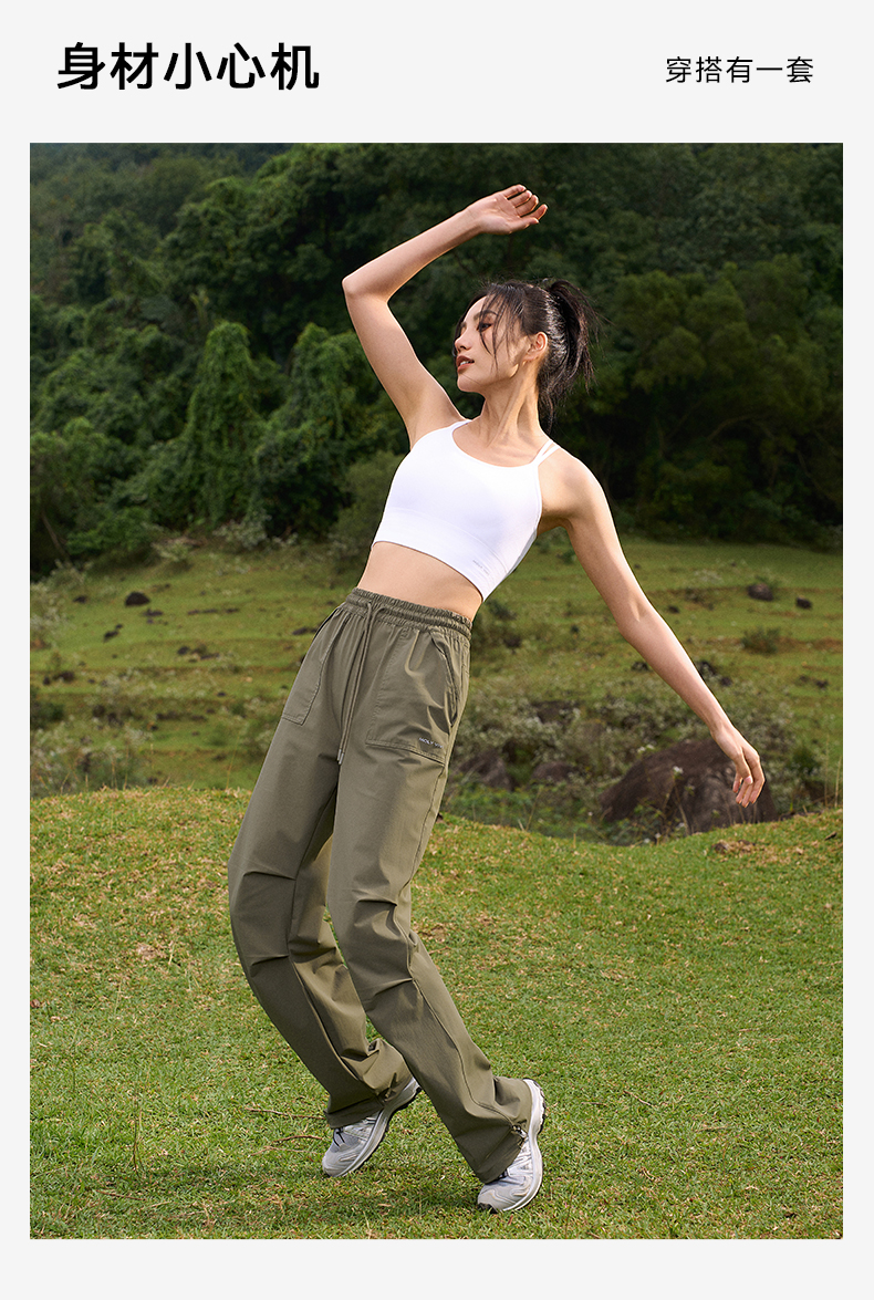 魔力薇薇盈感伞兵防晒裤,廓形打褶层次提升造型感,自然灵感配色