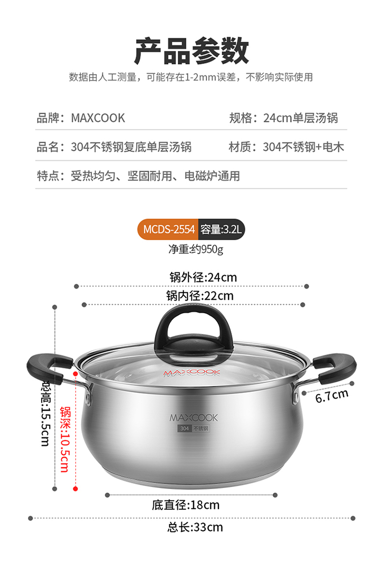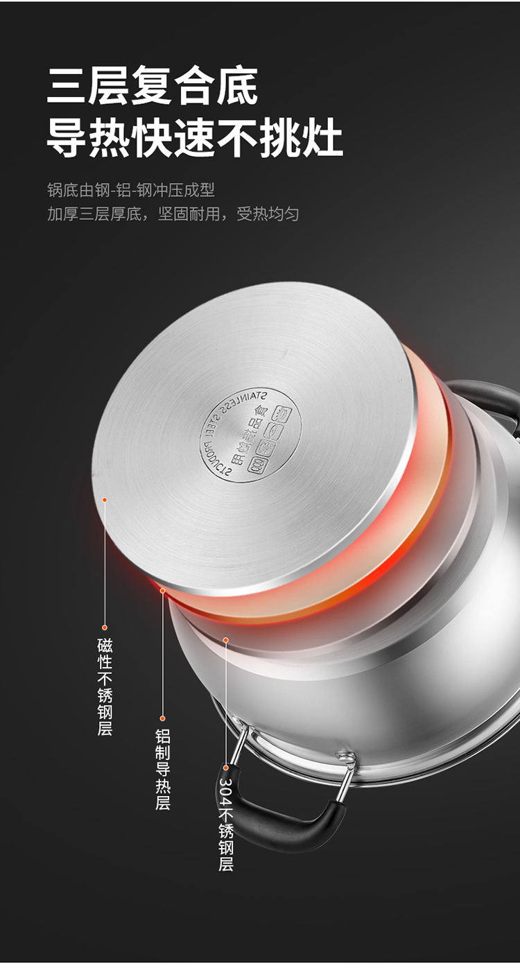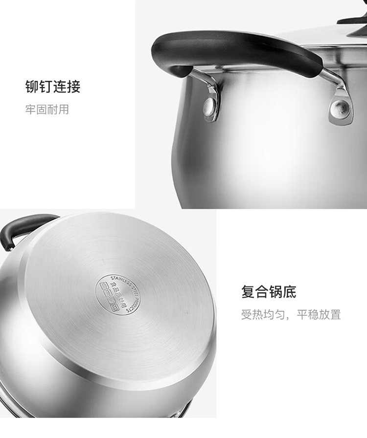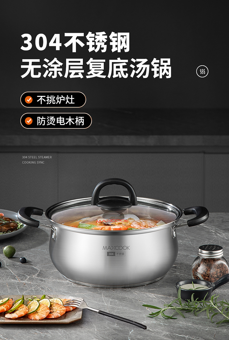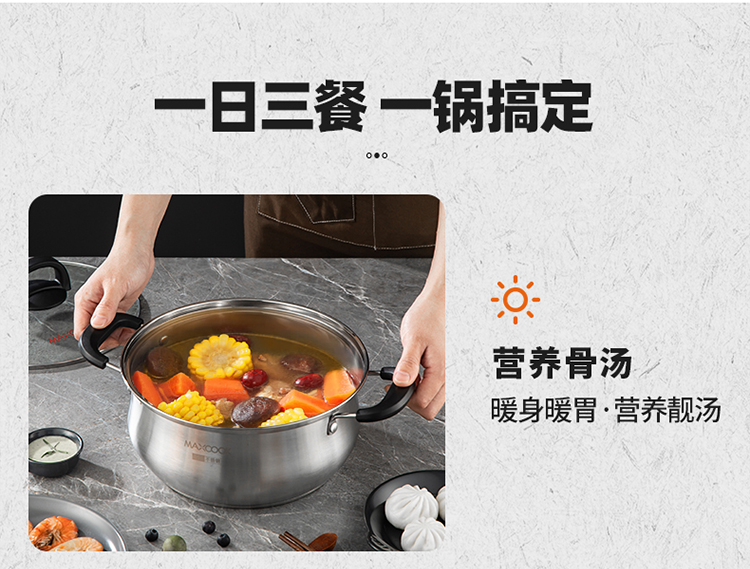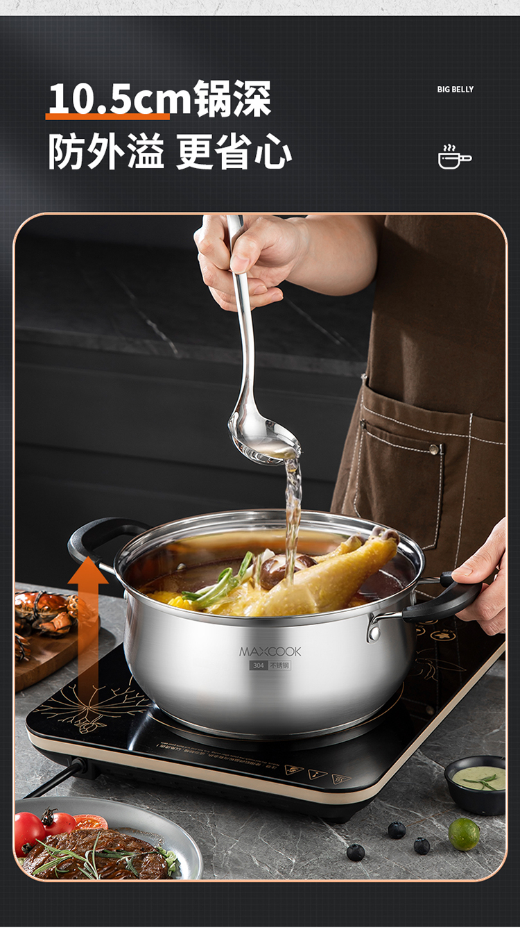 美厨雅致系列304不锈钢复底汤锅22cmMCDS-2554
