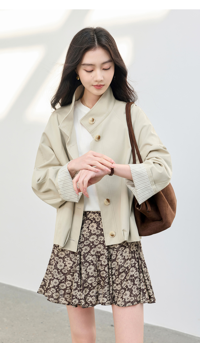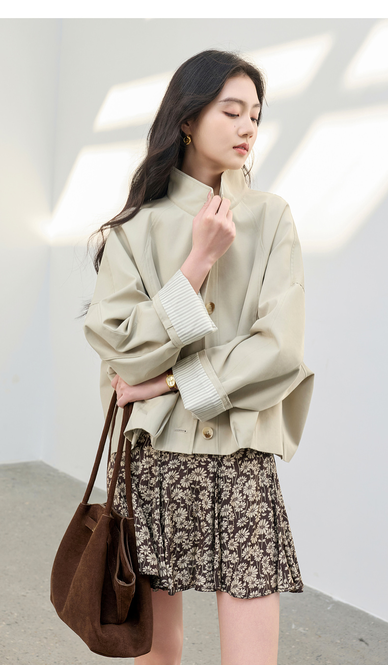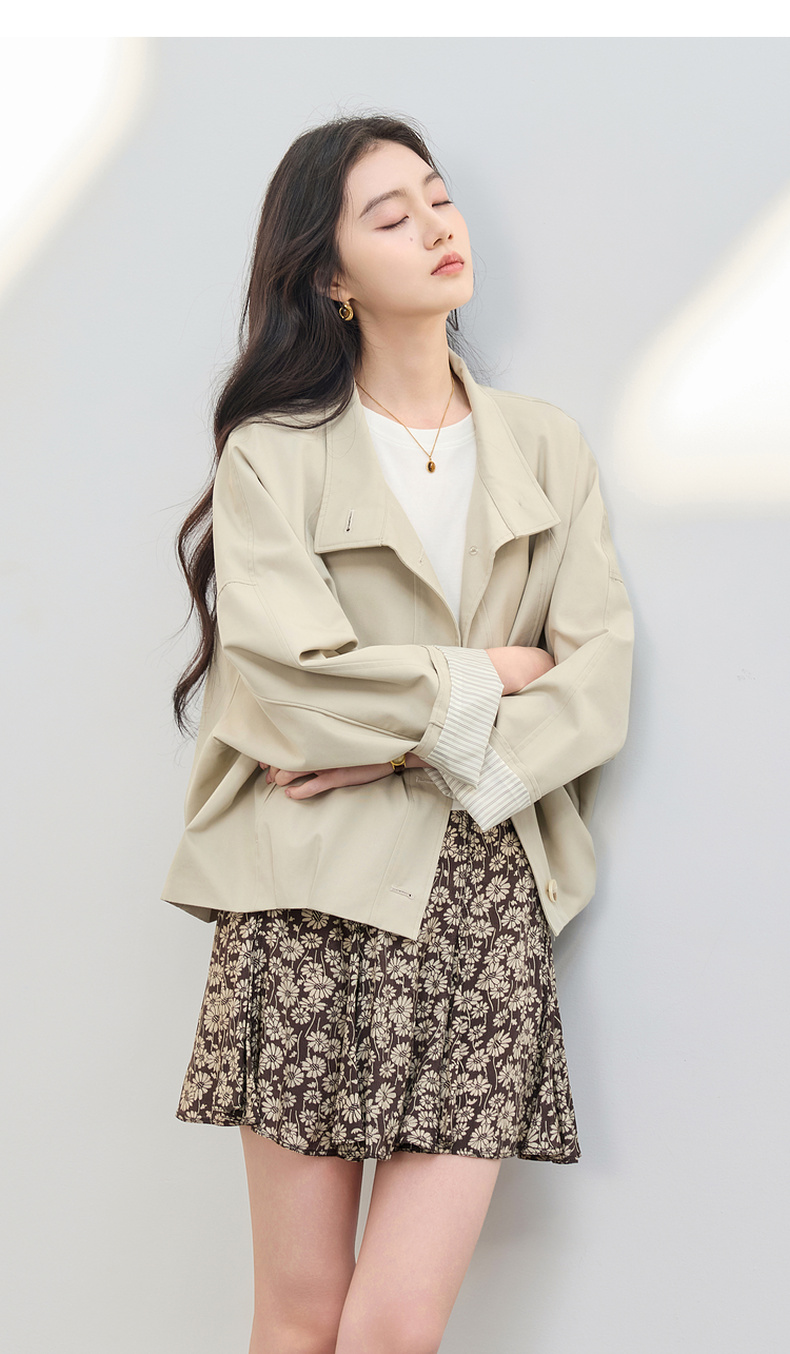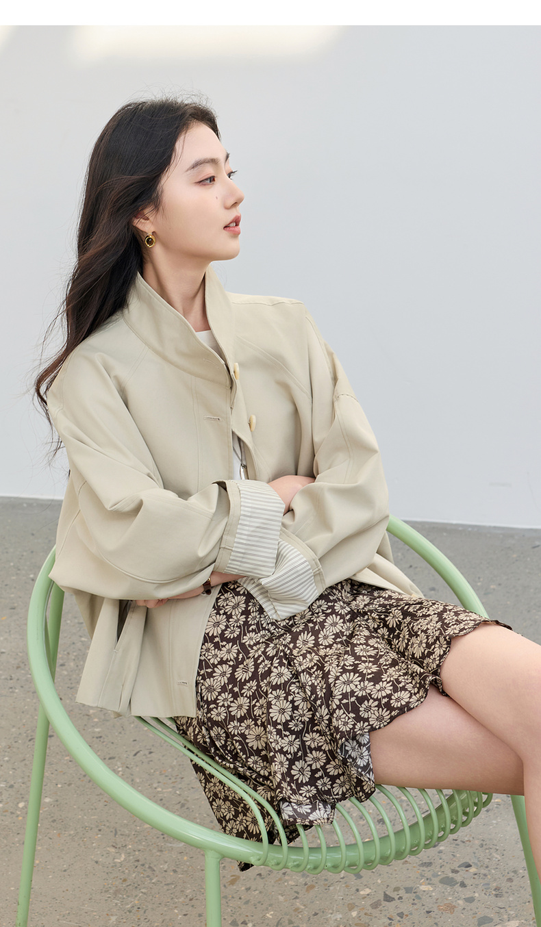 三彩2026春季新款立领长袖廓形外套夹克卡其工装风开衫宽松休闲M