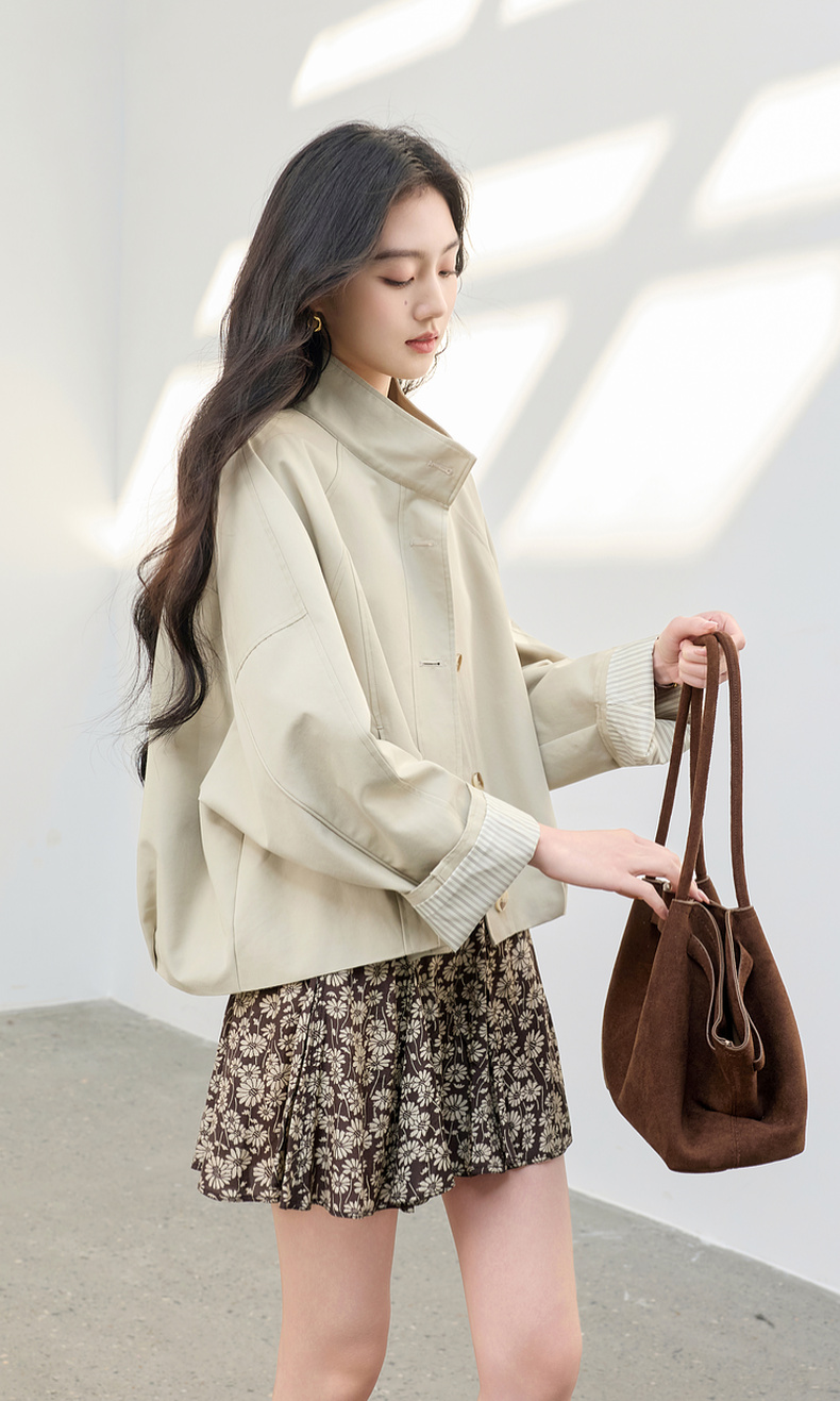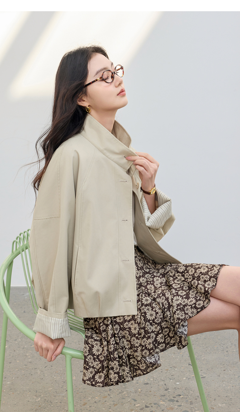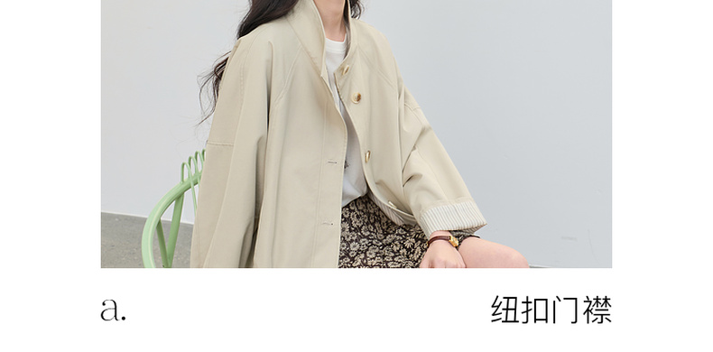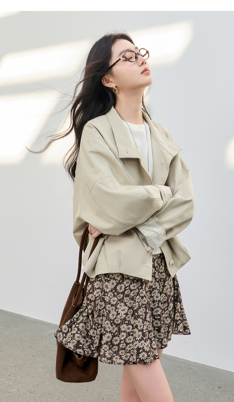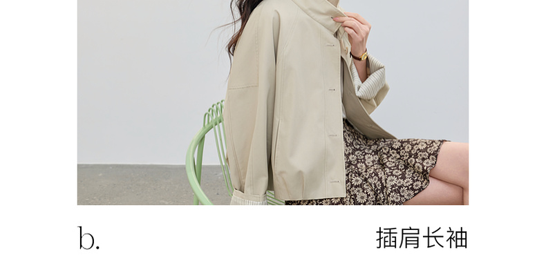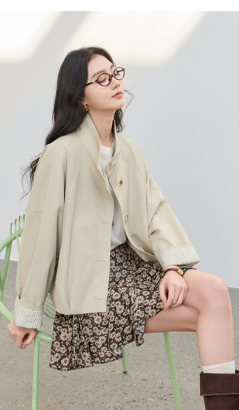 三彩2026春季新款立领长袖廓形外套夹克卡其工装风开衫宽松休闲M