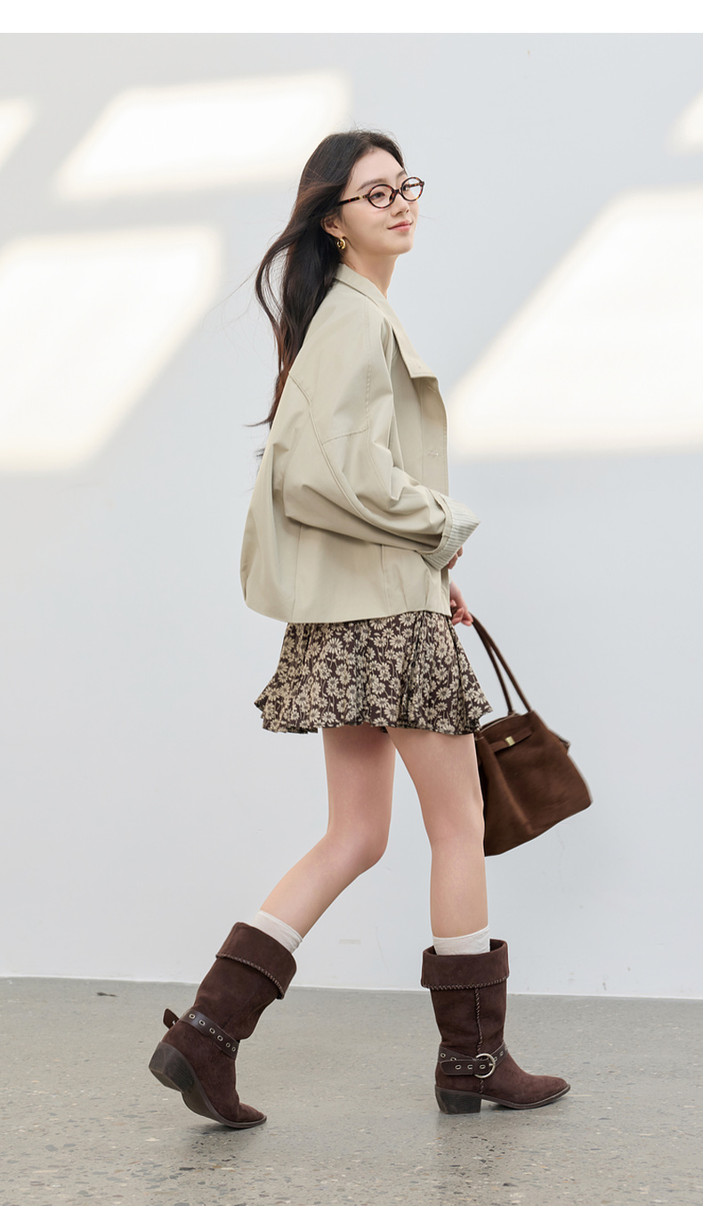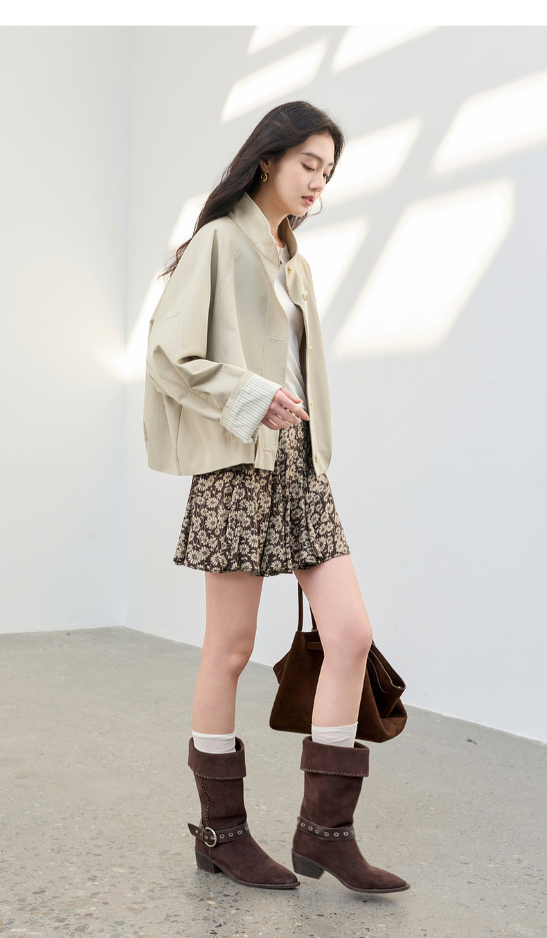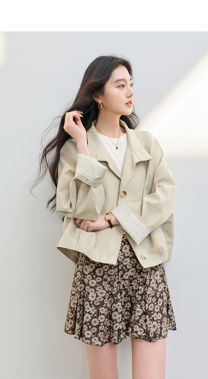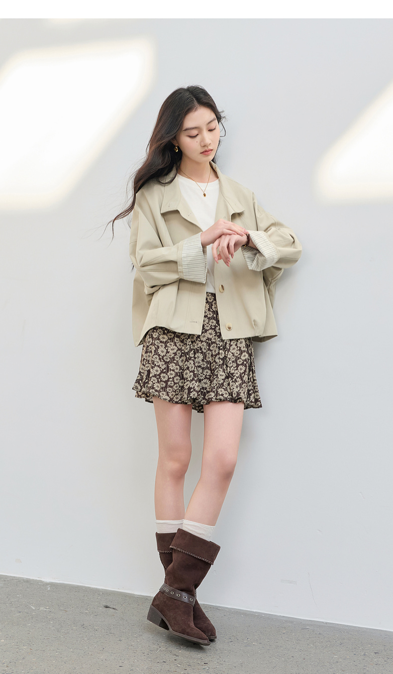 三彩2026春季新款立领长袖廓形外套夹克卡其工装风开衫宽松休闲M