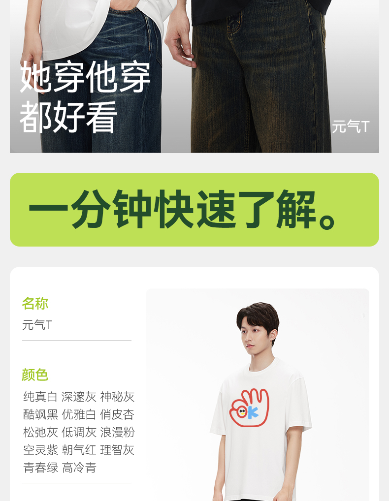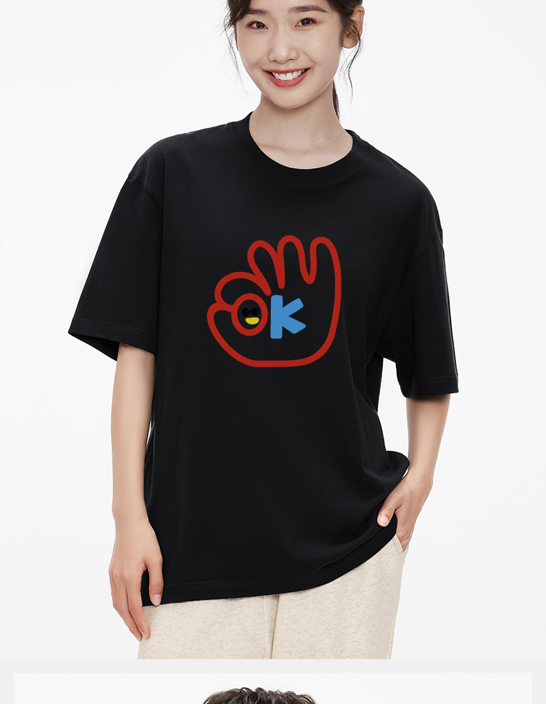 「棉的美学」个性潮流设计感OK印花短袖T恤透气柔软舒适休闲上衣