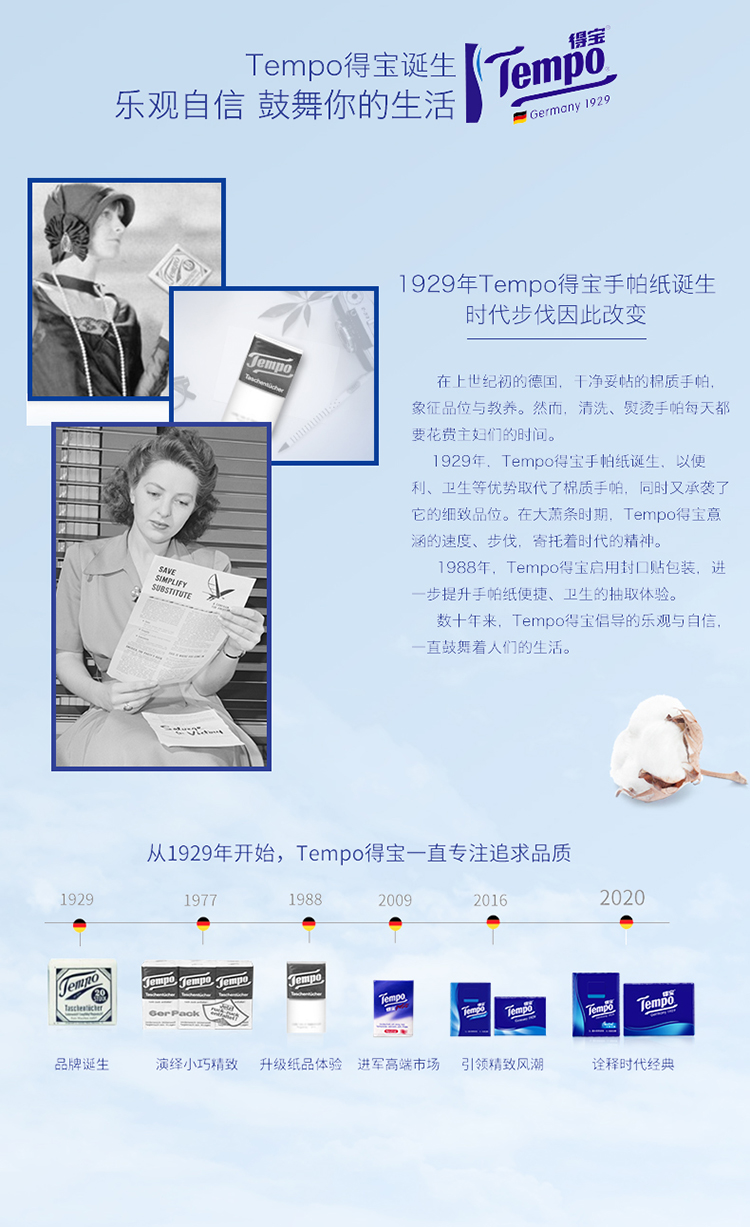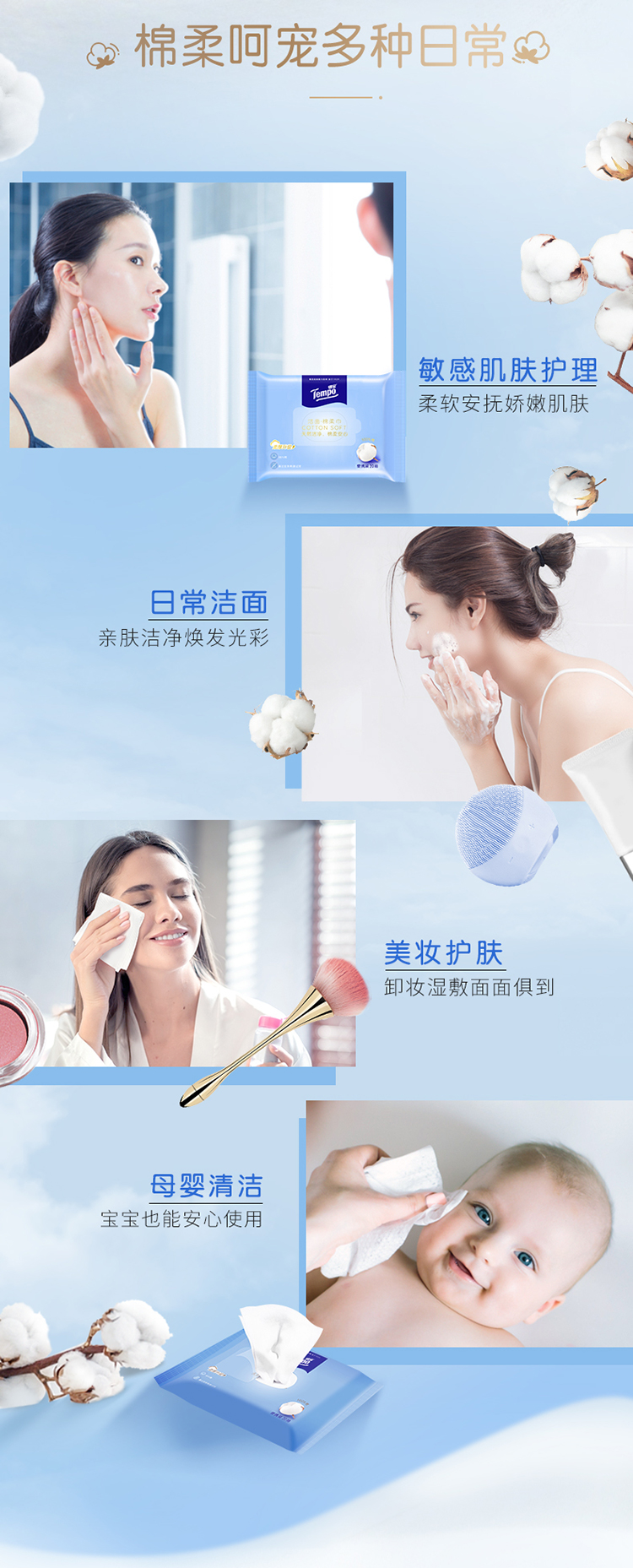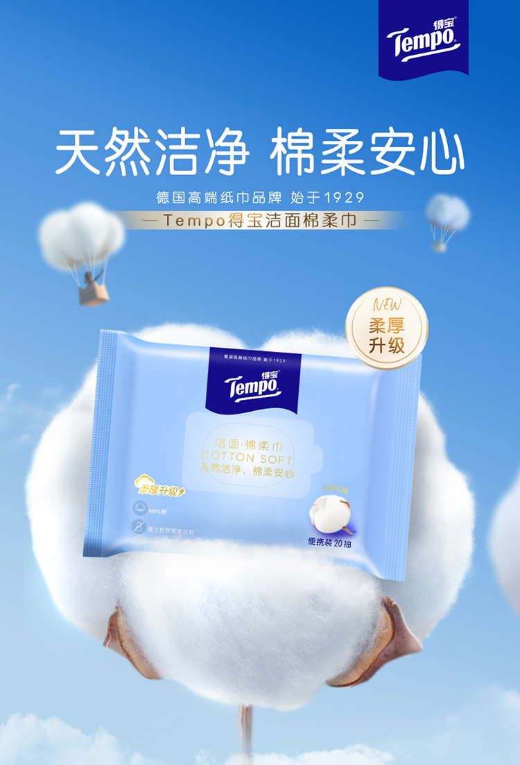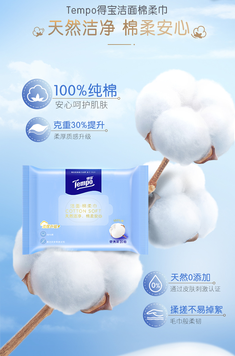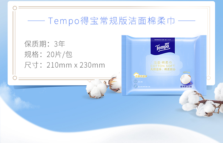 得宝(Tempo)洁面棉柔巾20片/包x2包 干湿两用便携装
