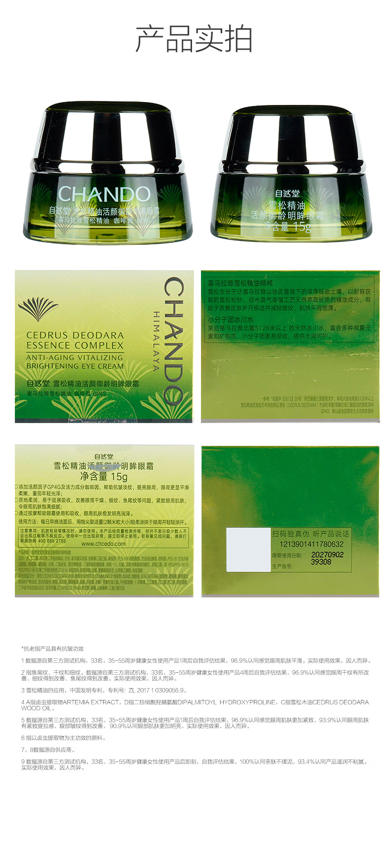 自然堂雪松精油活颜御龄明眸眼霜15g