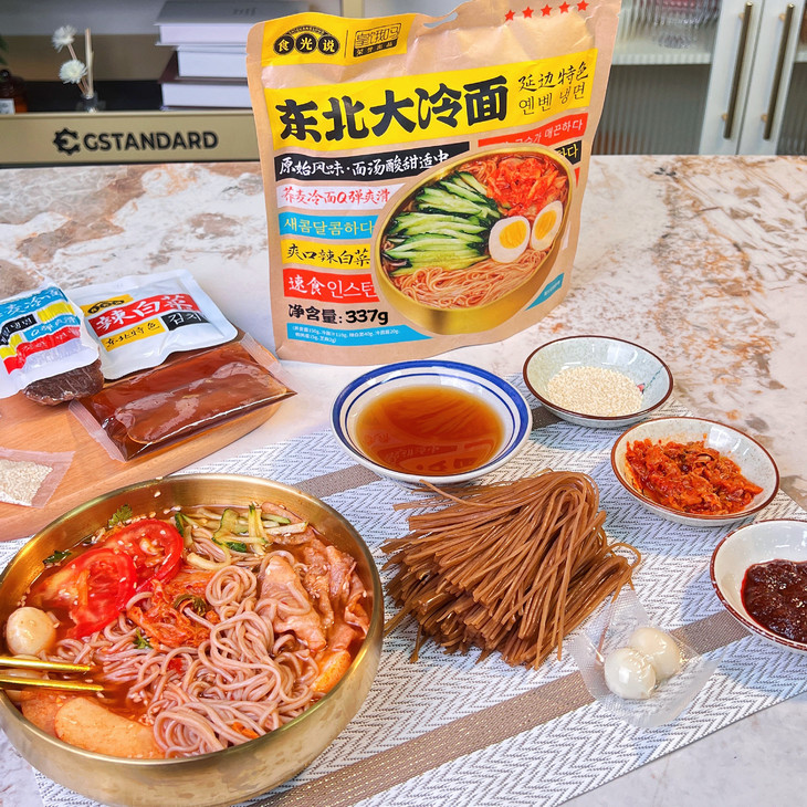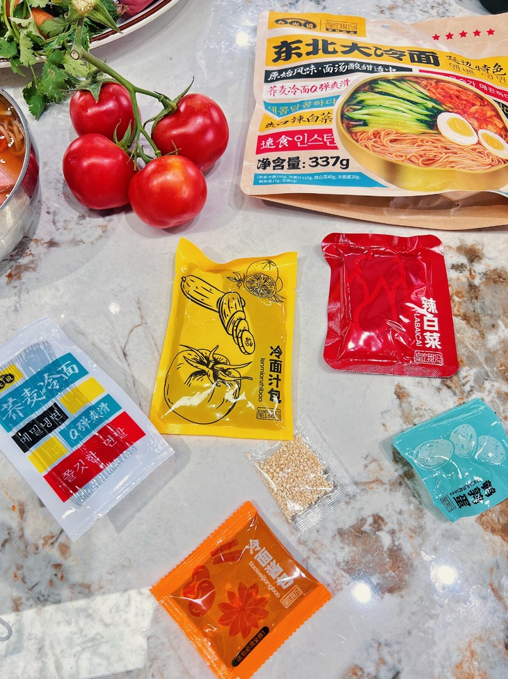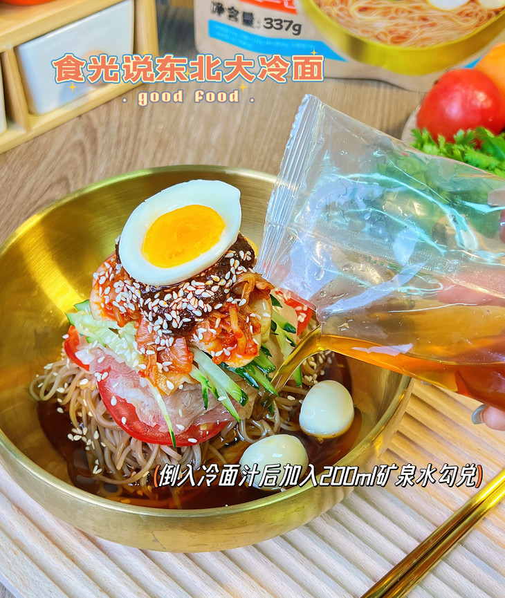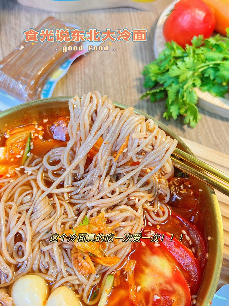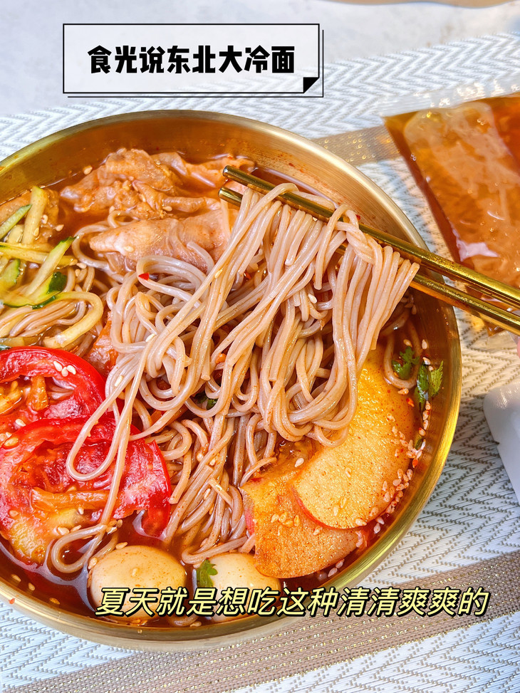 鲜香酸甜的食光说®东北荞麦冷面 真的无人不爱 荞麦面的细长柔韧,冷面酱浓厚香醇 每一口都带着沁人心脾的酸甜🍜 软嫩Q弹的鹌鹑蛋,味正提鲜的芝麻 清凉解腻的冷面汁和脆爽的辣白菜 丰富配料创造出一种独特的口感 也可以根据自己喜好添加果蔬 专治夏天的没胃口🤤