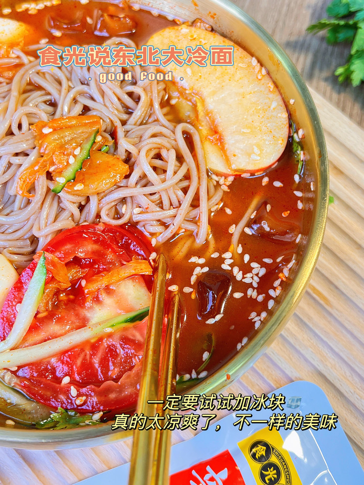 没有人会在将近40度的高温 拒绝一碗冰冰凉凉的荞麦冷面吧 保留了延边特色的原始风味 面汤酸甜适中,配上爽口的辣白菜🥬🥬 那叫一个开胃哟~ 冷面不仅仅是东北人的消暑神器 对他们而言,是一年四季的信仰 夏日带着冰碴的大冷面,一口直通心底 凉爽的滋味瞬间填满整个口腔 而冬日的温冷面,微辣酸甜 是燥热暖房里难得的一抹清爽☁️