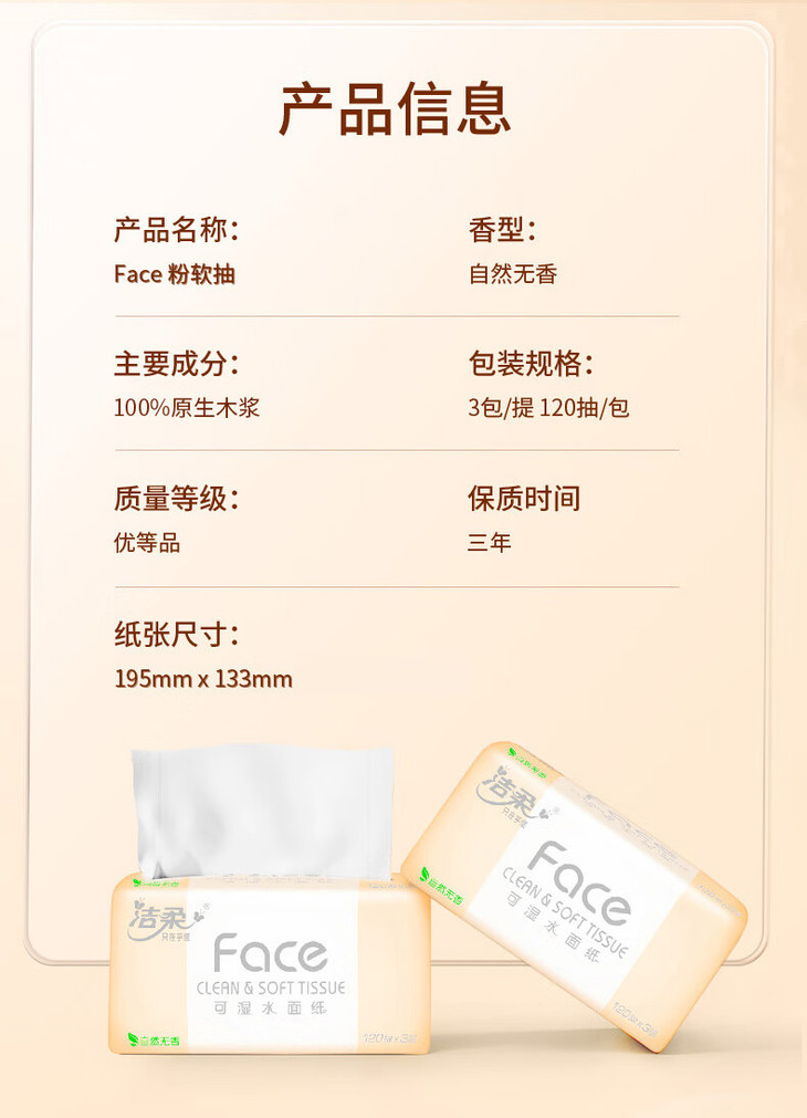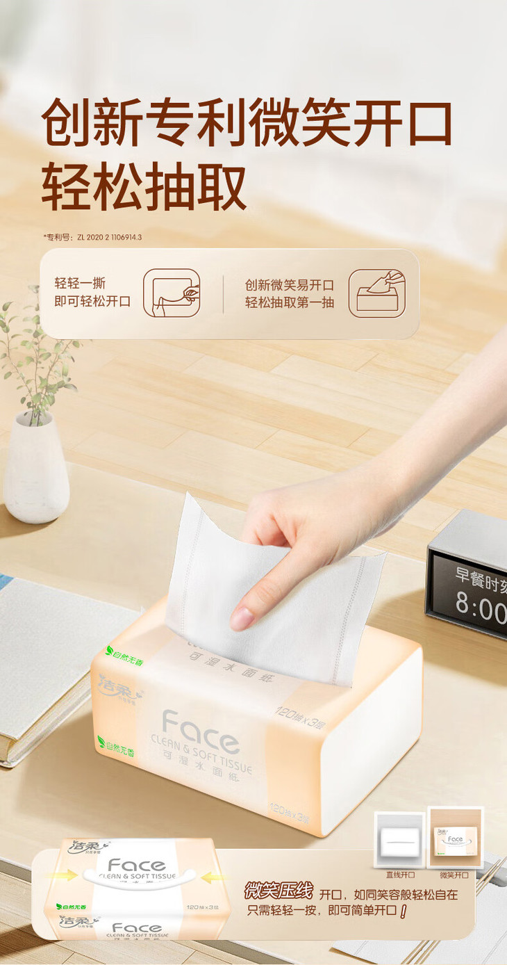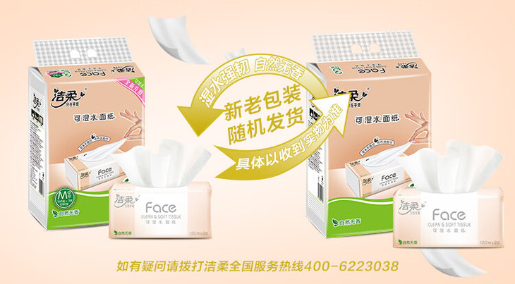 【洁柔】洁柔抽纸 粉Face可湿水3层120抽*3包