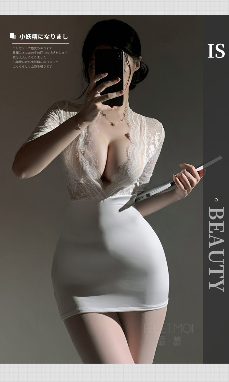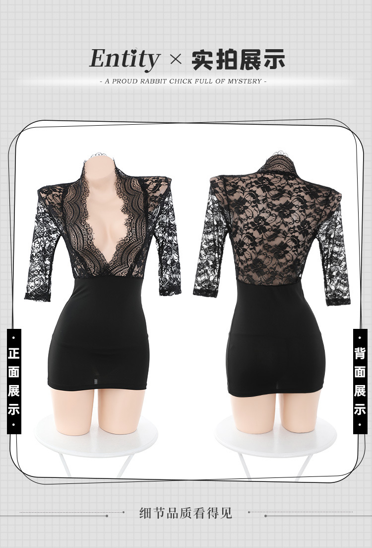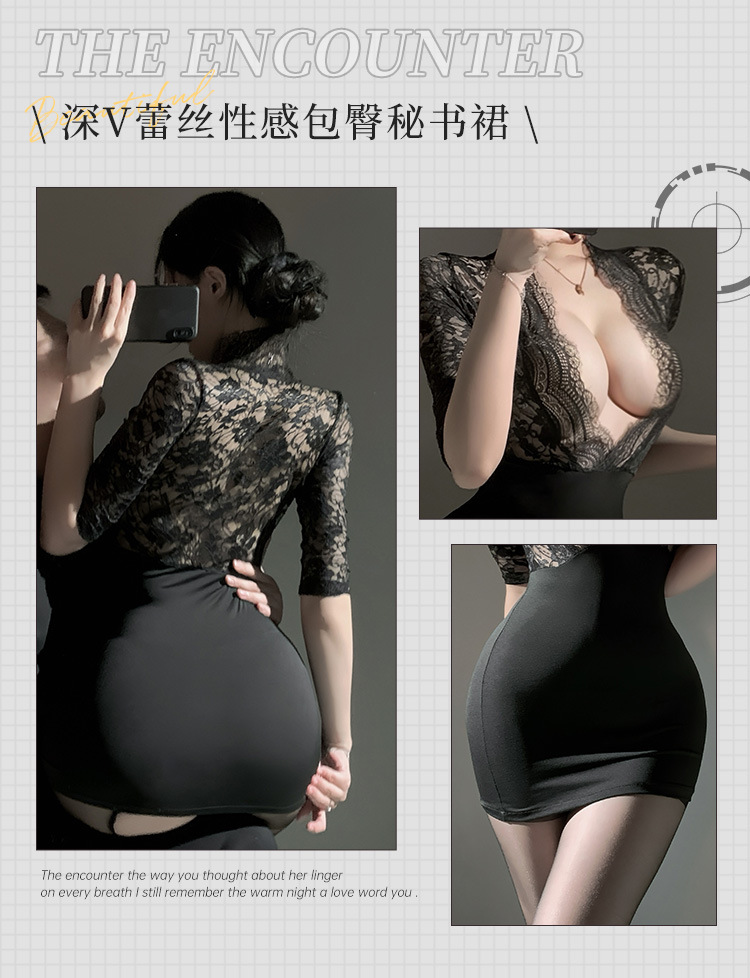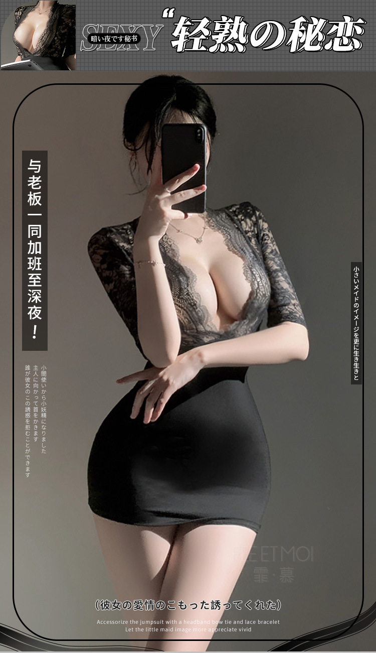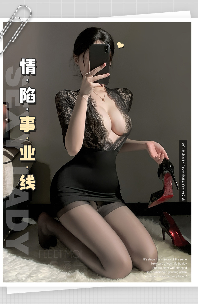 霏慕深V露胸蕾丝透视性感秘书裙包臀裙诱惑套装6757情趣内衣纯欲