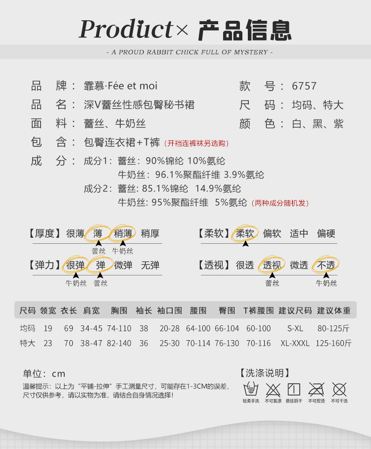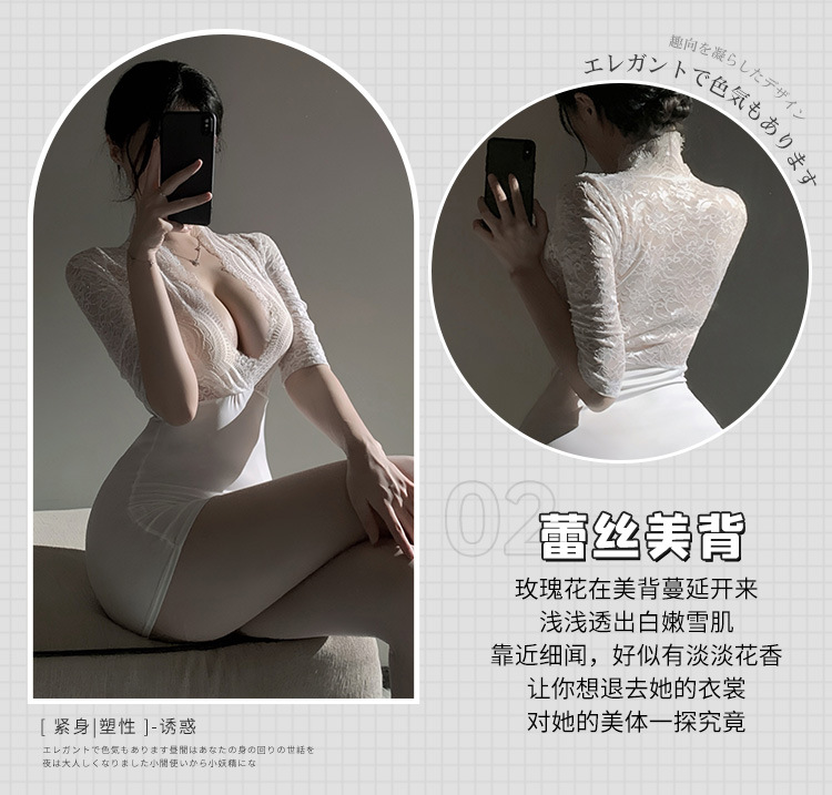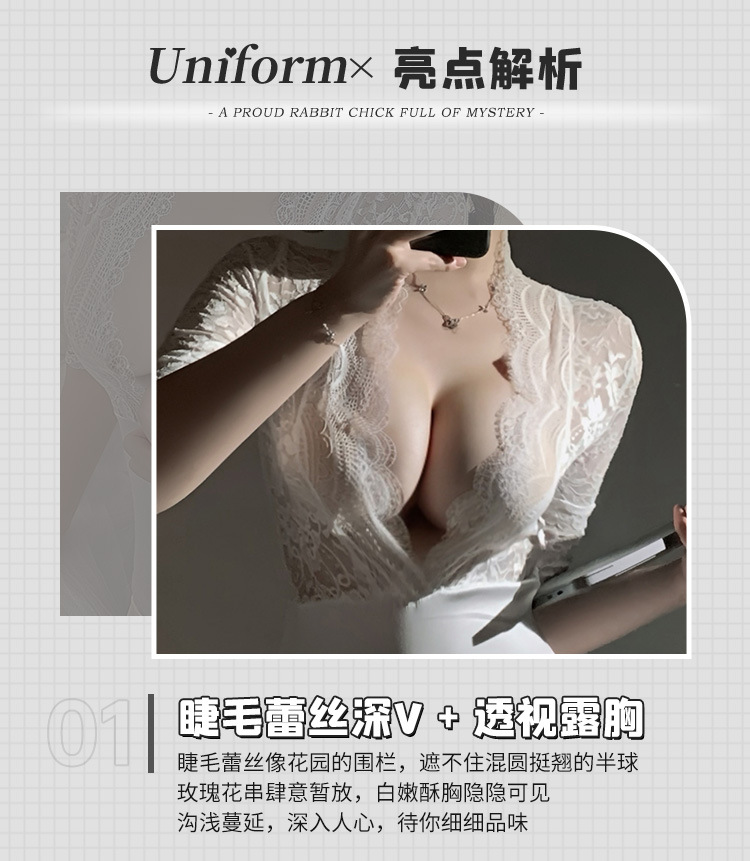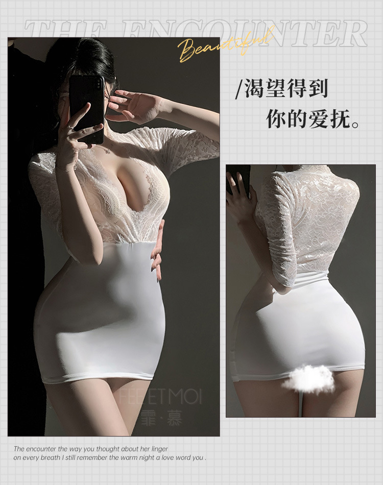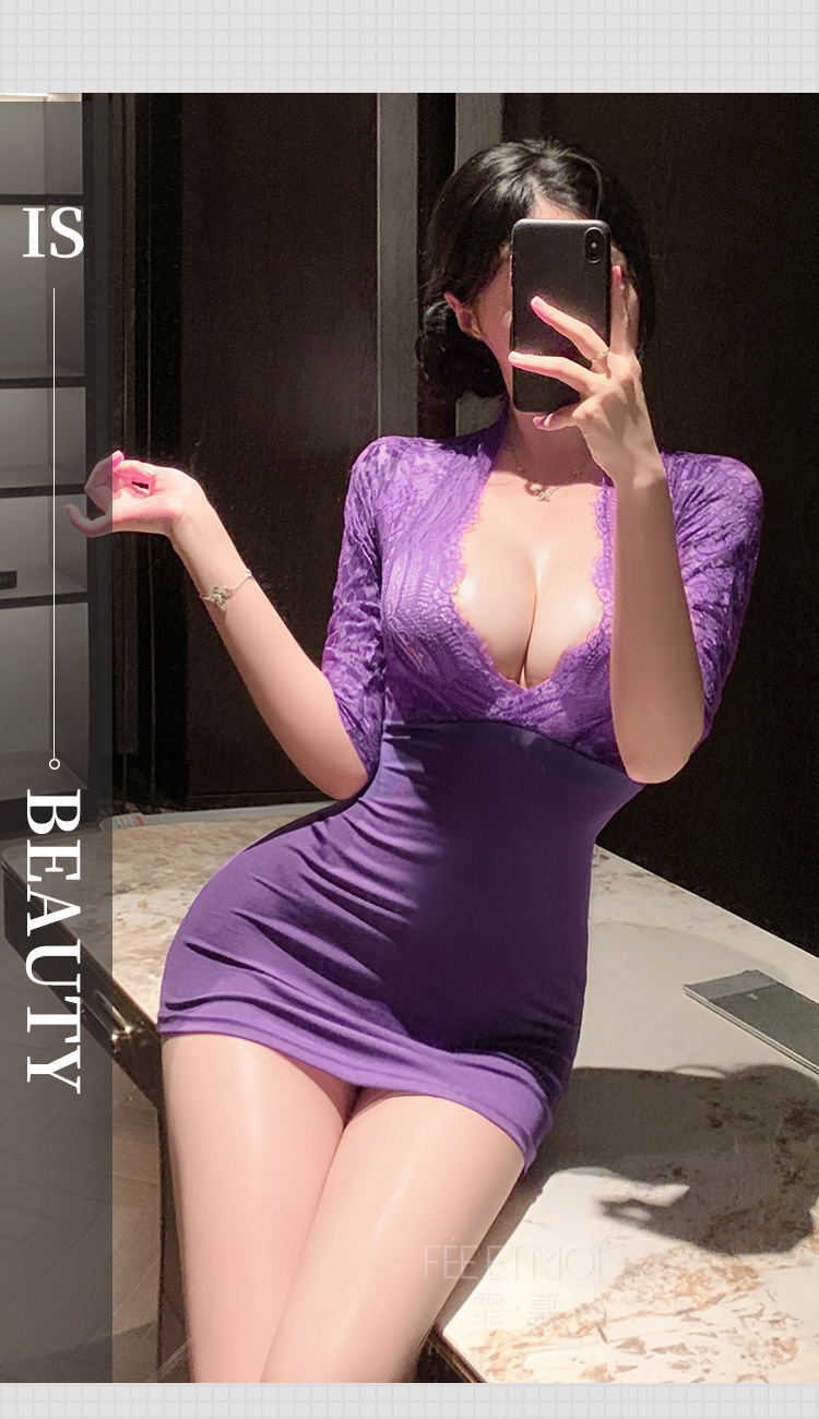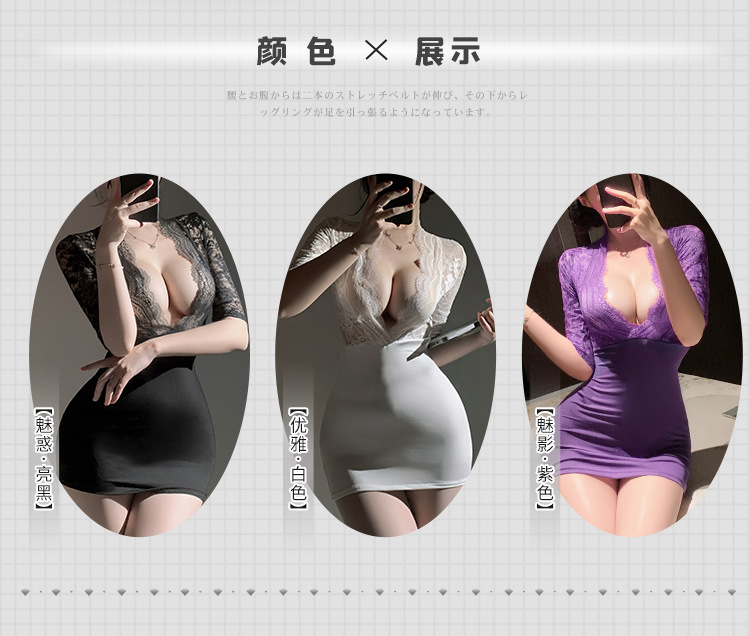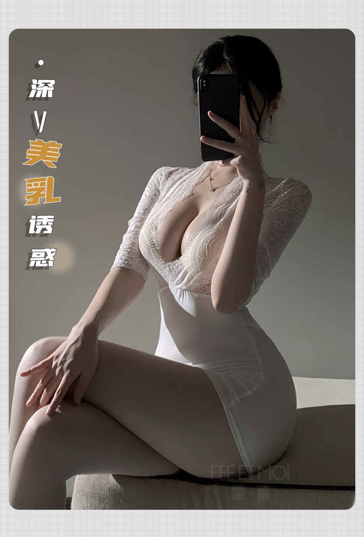 霏慕深V露胸蕾丝透视性感秘书裙包臀裙诱惑套装6757情趣内衣纯欲