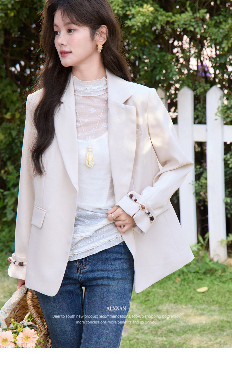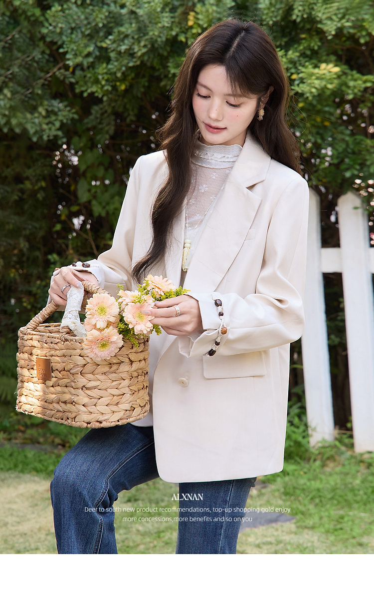 鹿向南「知书织梦」高级感杏色西装外套女春季气质好看正装上衣