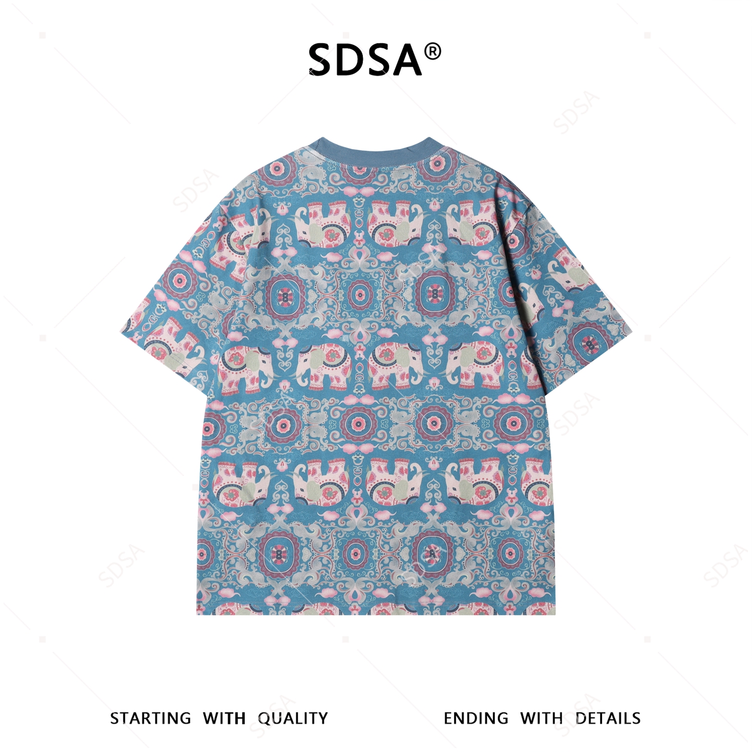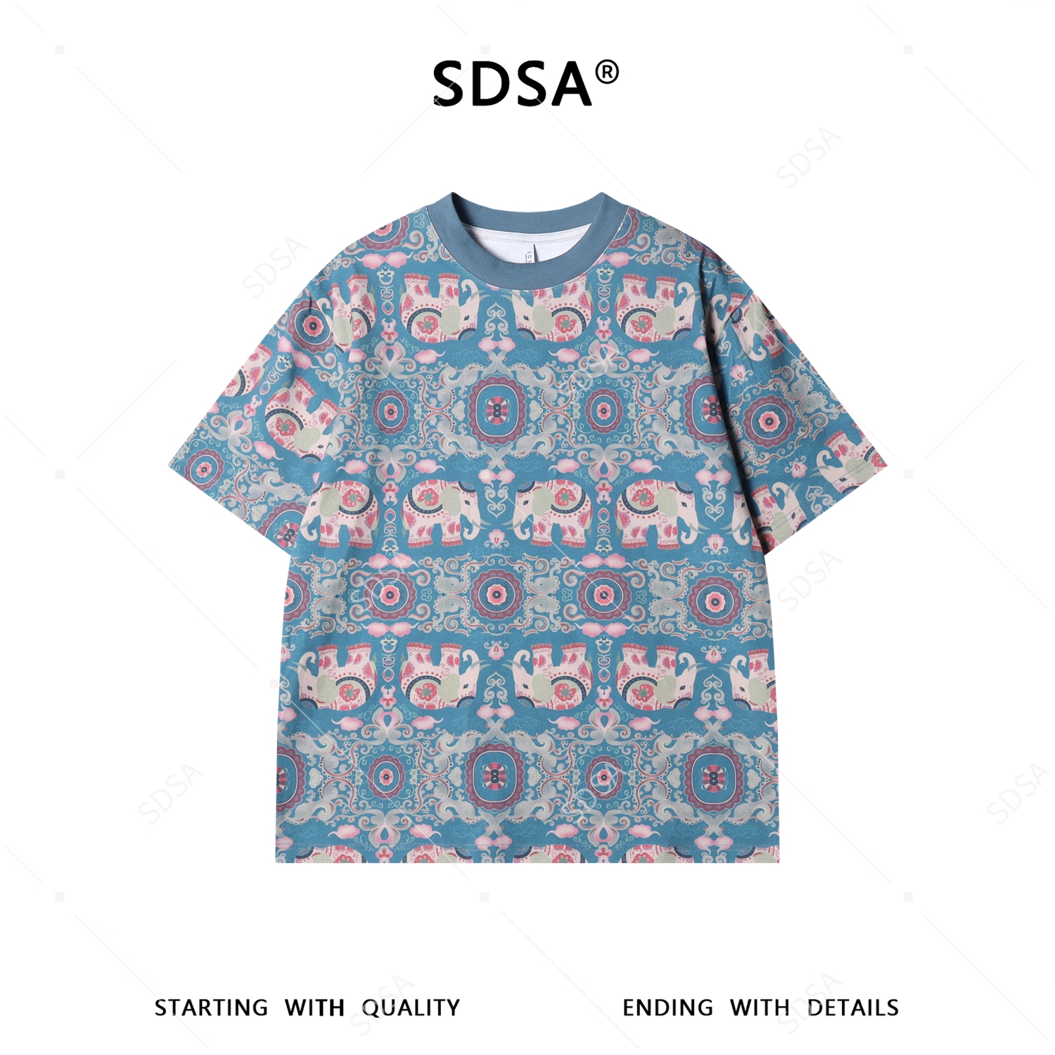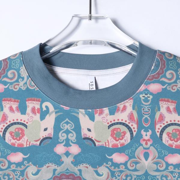 26T172SDSA男装2026新款高贵轻奢时尚撞色大象满印短袖T恤百搭圆领上衣