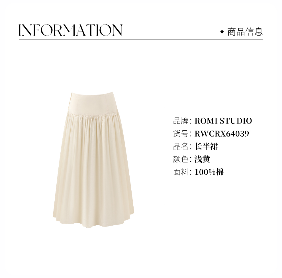 ROMI STUDIO“舒适优雅”轻薄干爽纯棉高腰捏褶半身裙 RWCRX64039