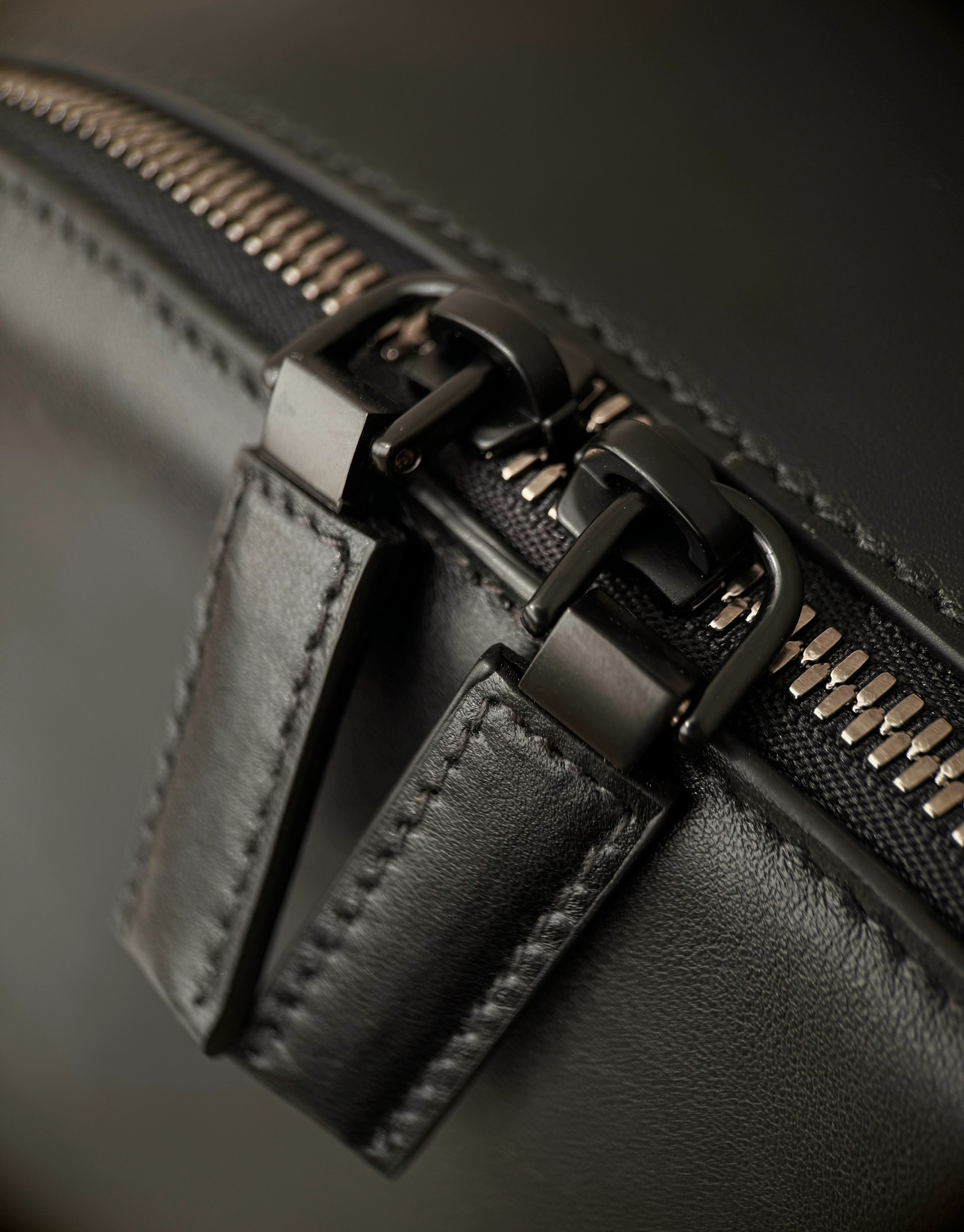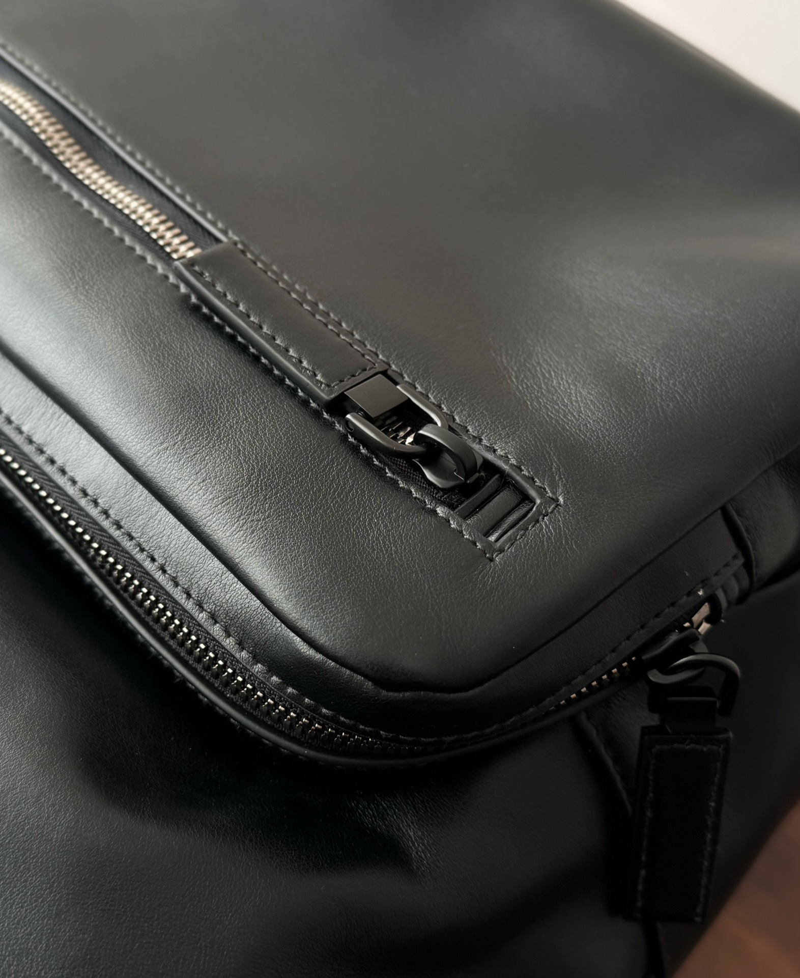 这款双肩包采用意大利进口纳帕小牛皮,细腻油亮,质感十足,可调节皮革肩带,舒适高档。酷黑五金材质满满的高级感,lampo双向拉链顺滑耐用,彰显顶级奢华品质!超大容量,手感柔软舒适,上身效果非常酷!