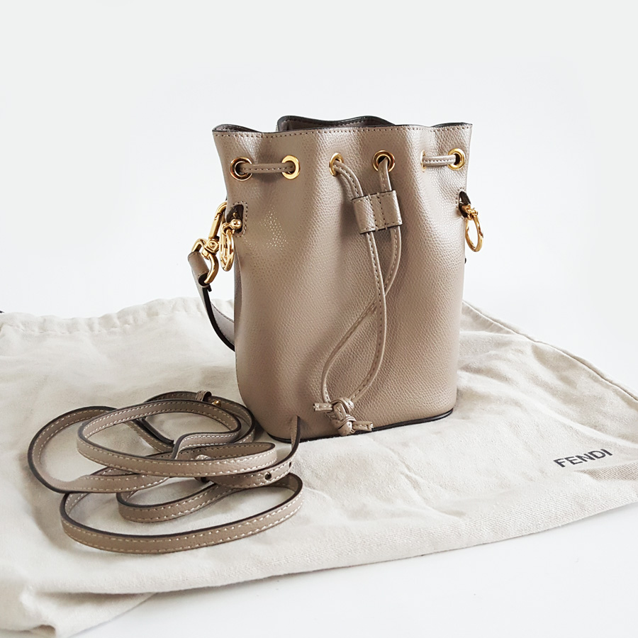【95新】FENDI芬迪8BS010灰色全皮Mon Tresor水桶包单肩包女士 151225AK01