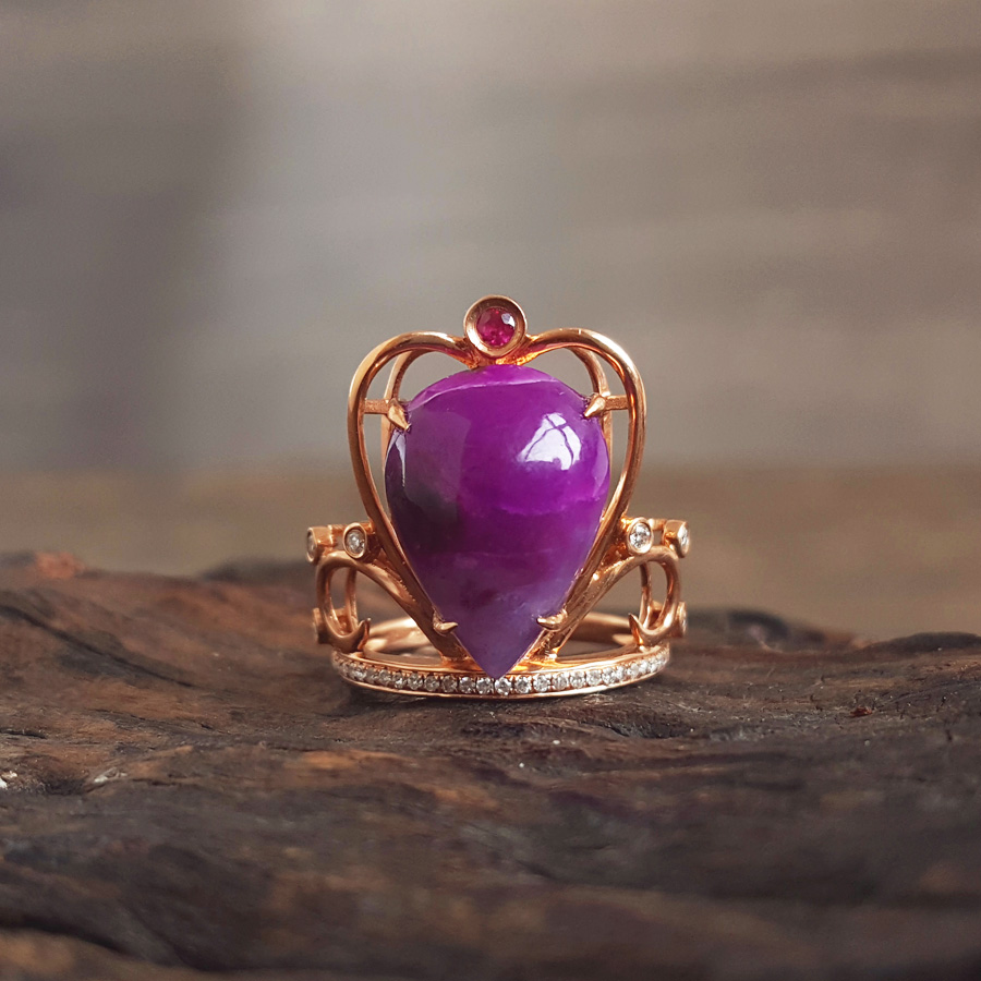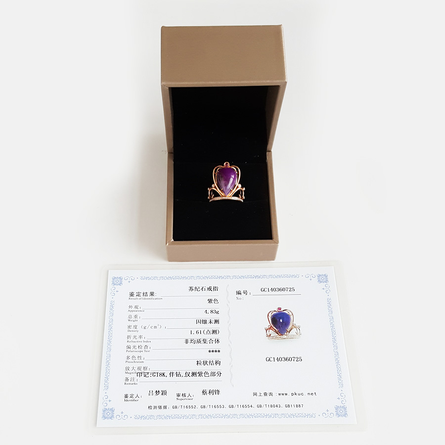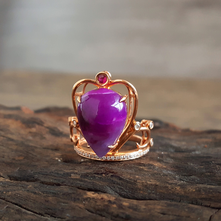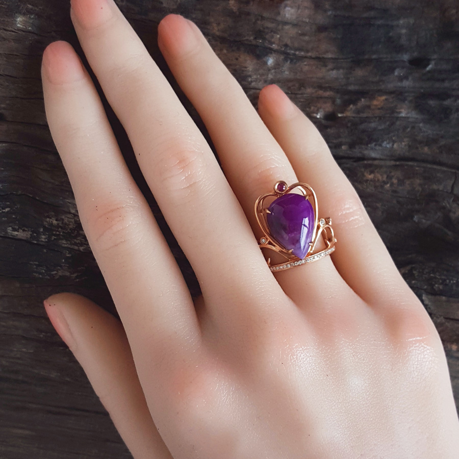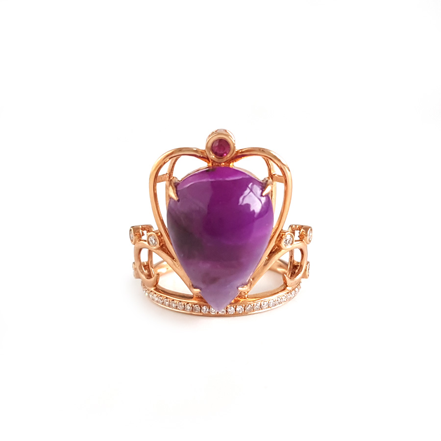 名称 | AU750玫瑰金镶钻镶天然细腻皇冠造型紫罗兰舒俱来戒指 |