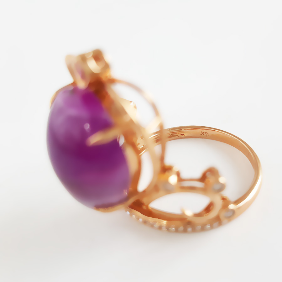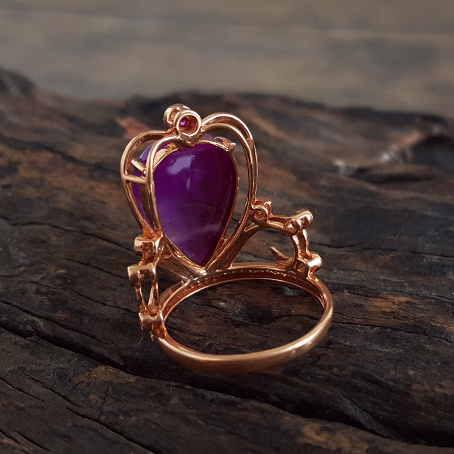 AU750玫瑰金镶钻镶天然细腻皇冠造型紫罗兰舒俱来戒指18.8*14.7MM(皆取最大值)11号(戒圈可改)120126XY04