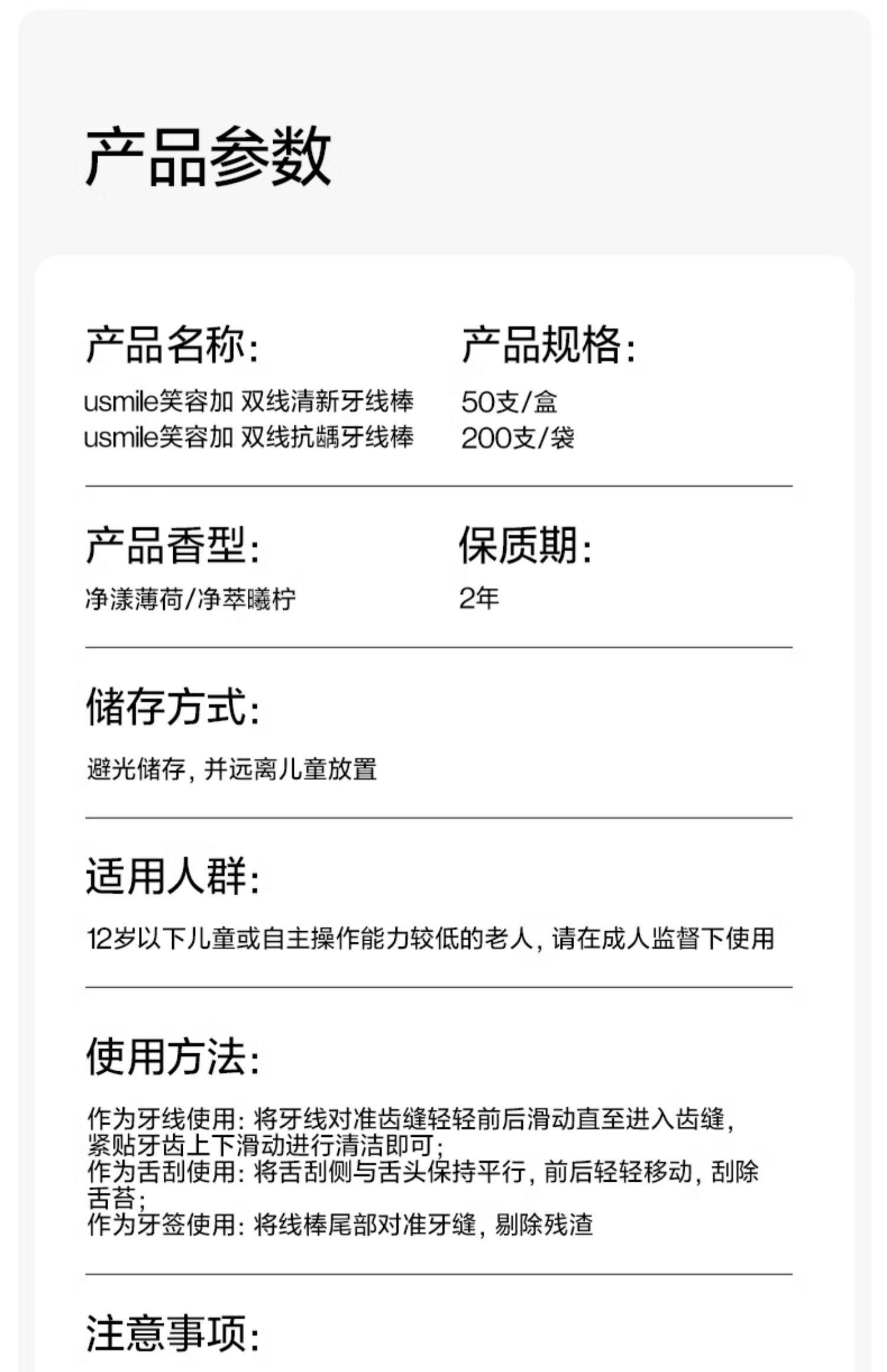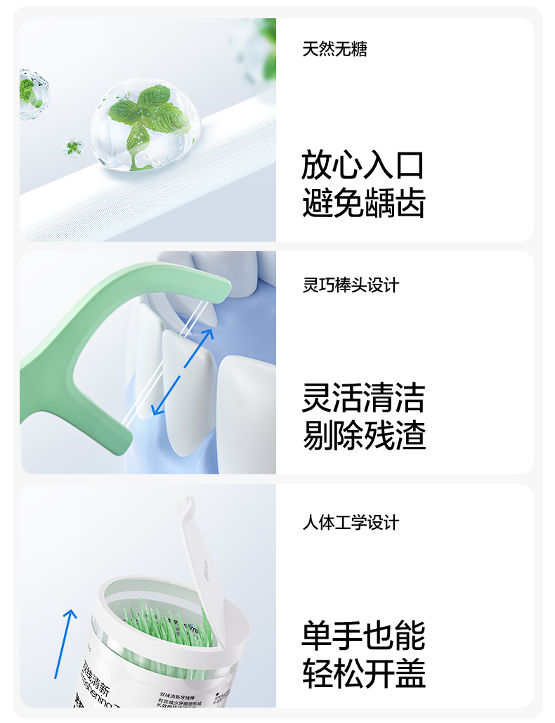笑容加usmile清新口腔家用薄荷牙线棒剔牙线清洁修护一步到位便携男女同款