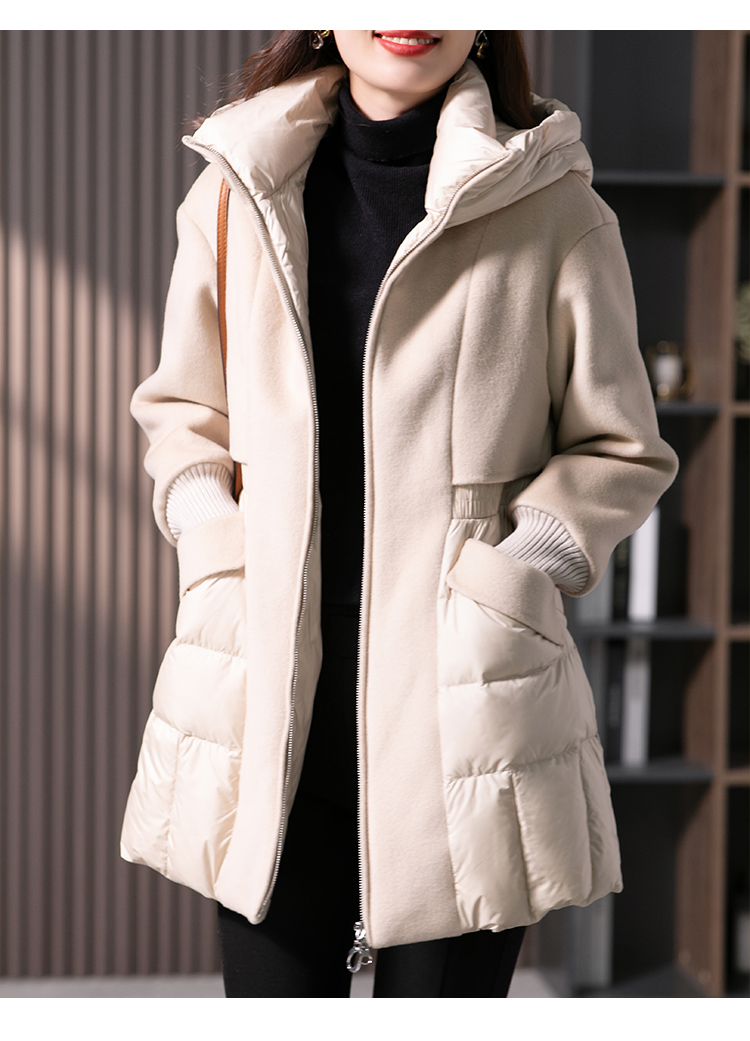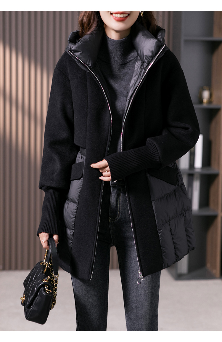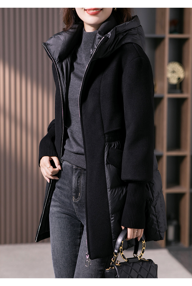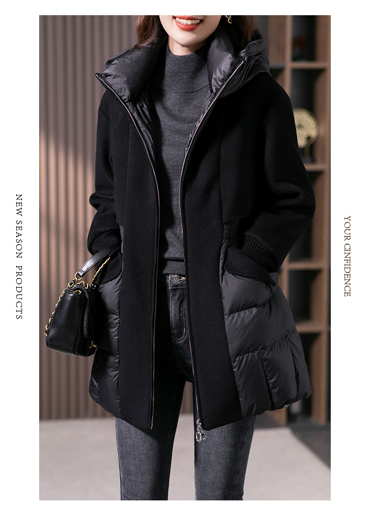 设计感拼接羊毛双面呢羽绒服女2023冬季新款时尚气质保暖外套