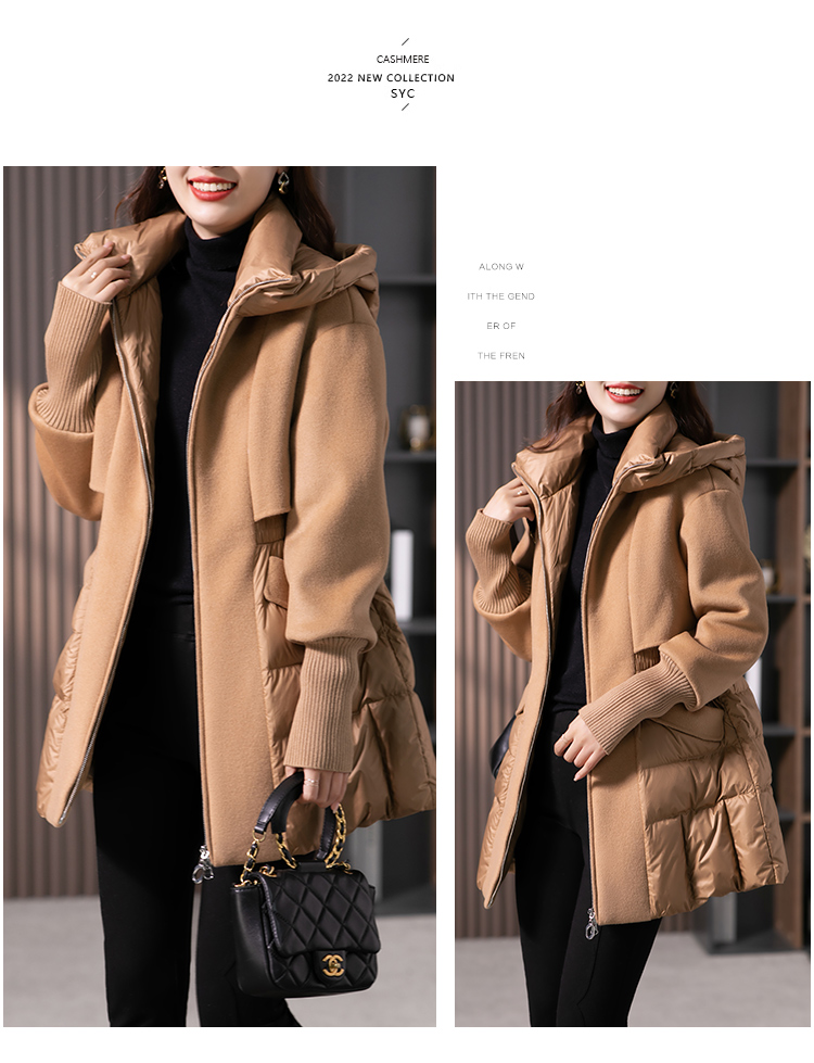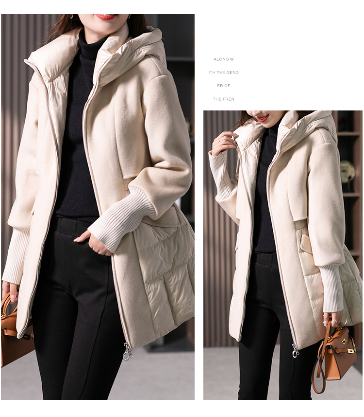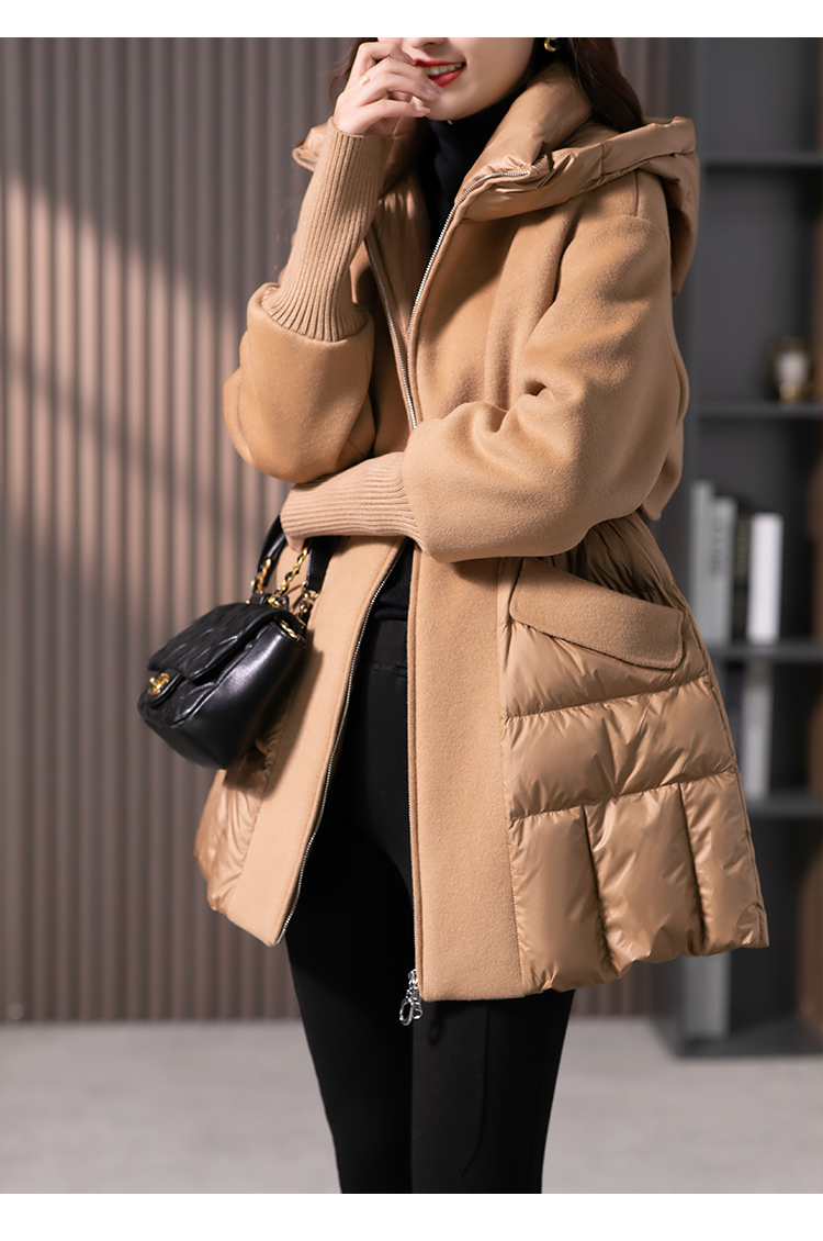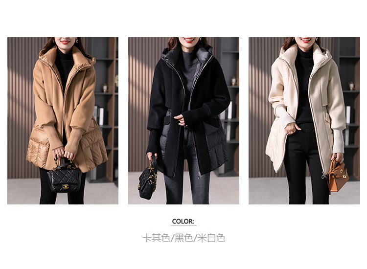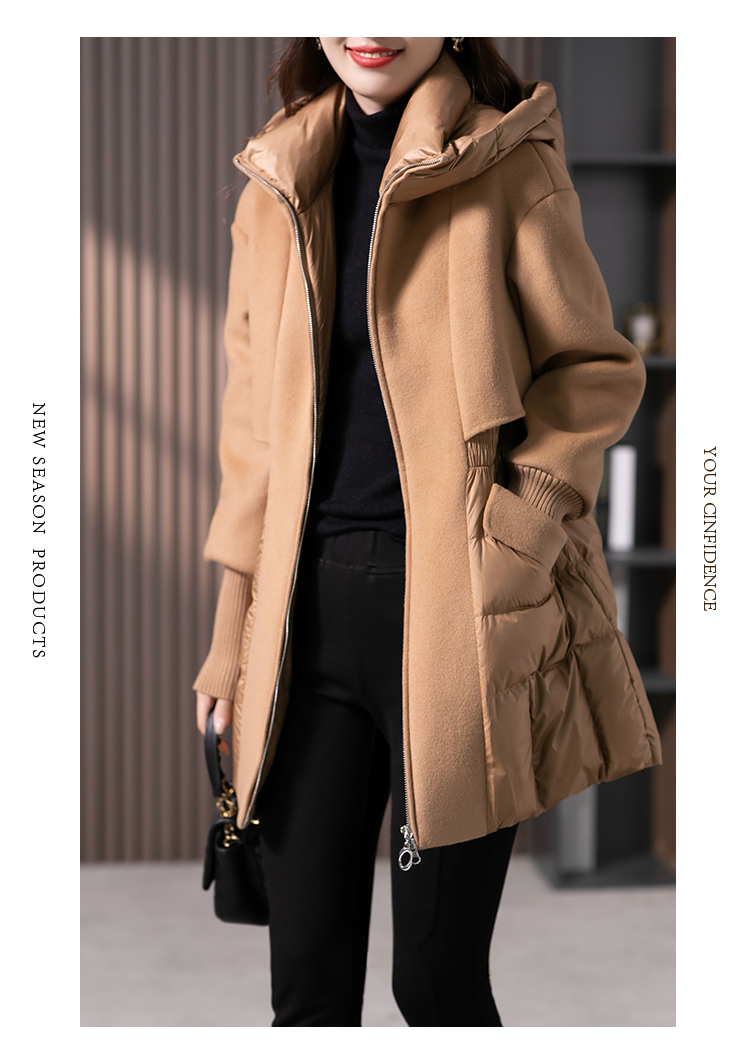 设计感拼接羊毛双面呢羽绒服女2023冬季新款时尚气质保暖外套